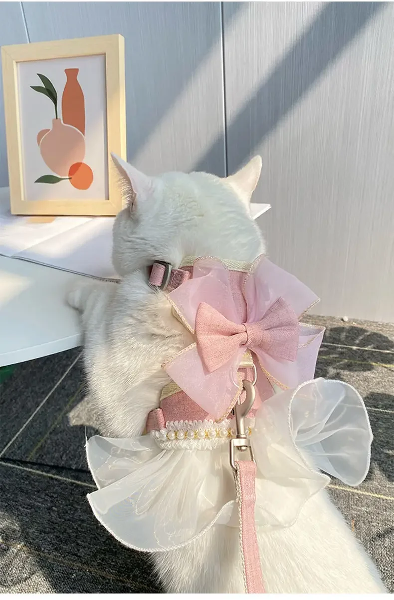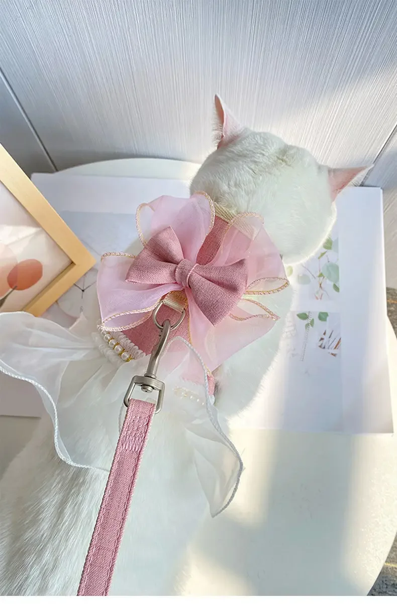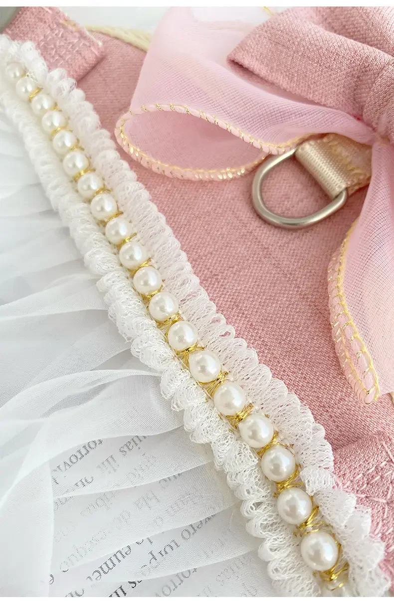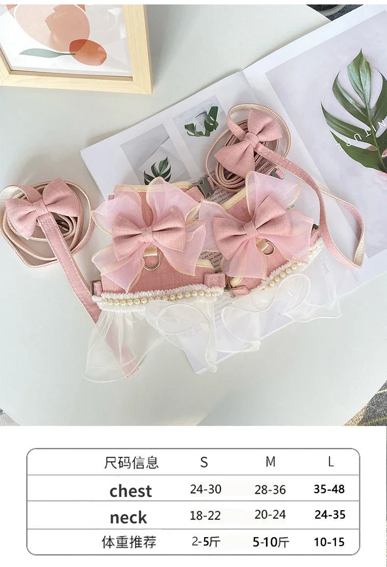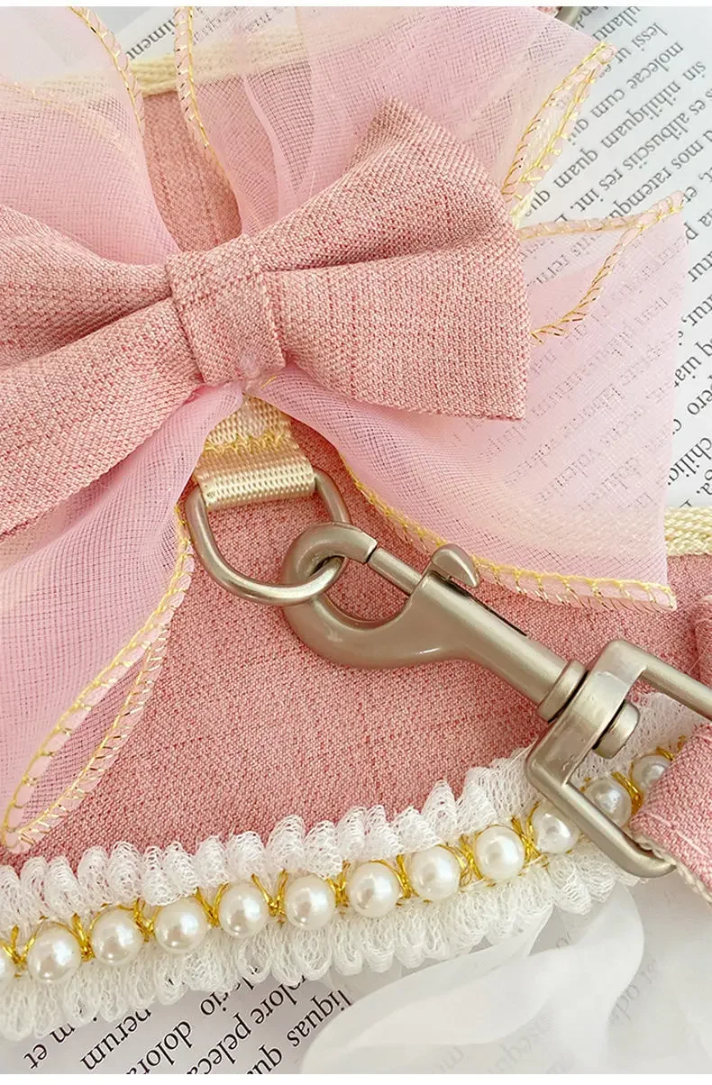 New Pet Traction Suit Cat Rope Princess Skirt Lace Pearl Pet Clothes Rope Dog Rope Breathable Comfortable Dog Chain Dog Harness