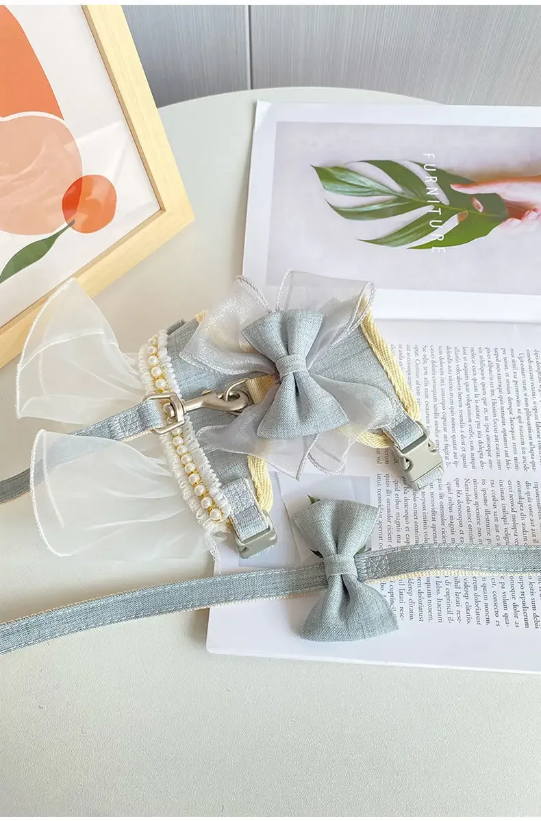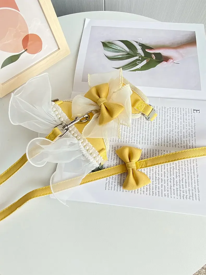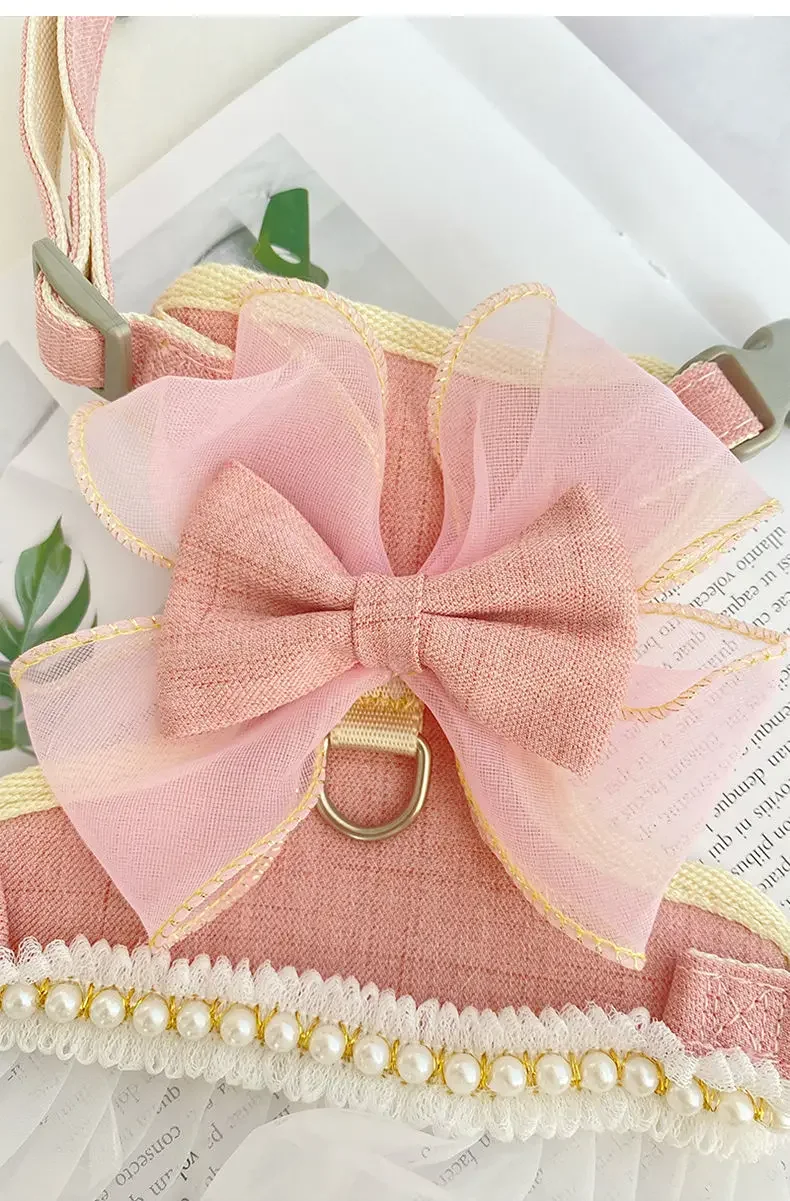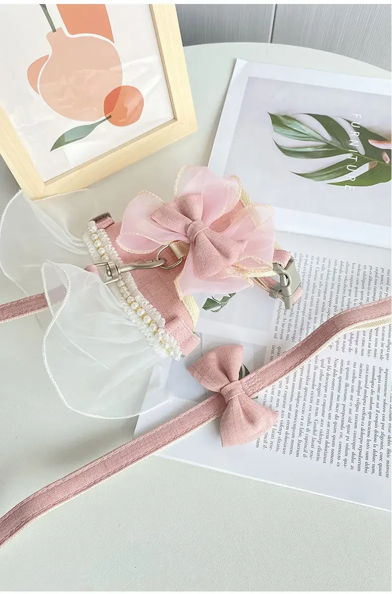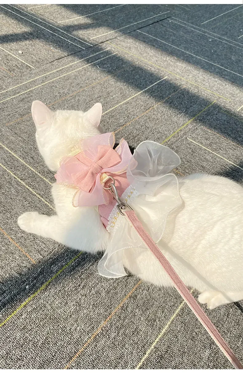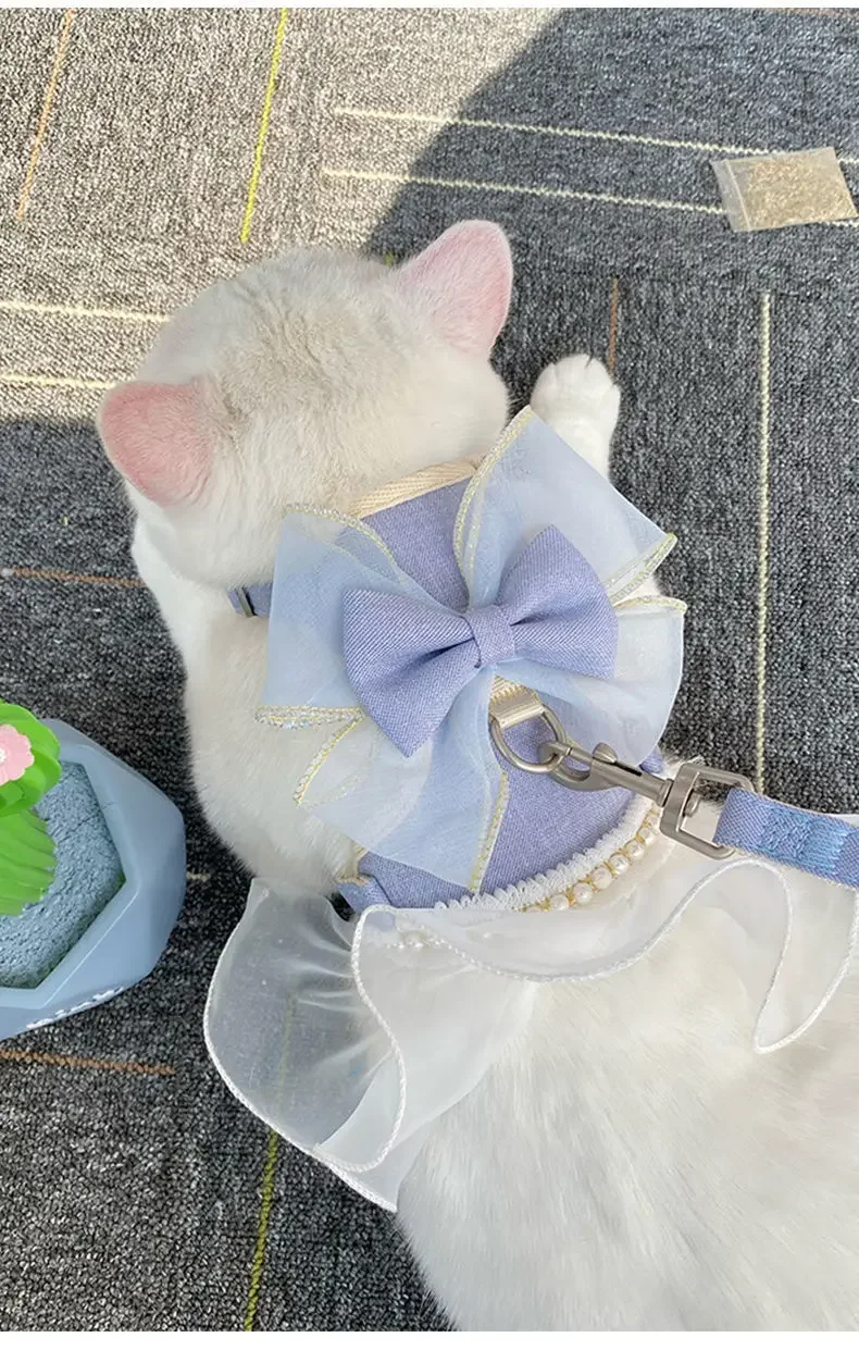 New Pet Traction Suit Cat Rope Princess Skirt Lace Pearl Pet Clothes Rope Dog Rope Breathable Comfortable Dog Chain Dog Harness
