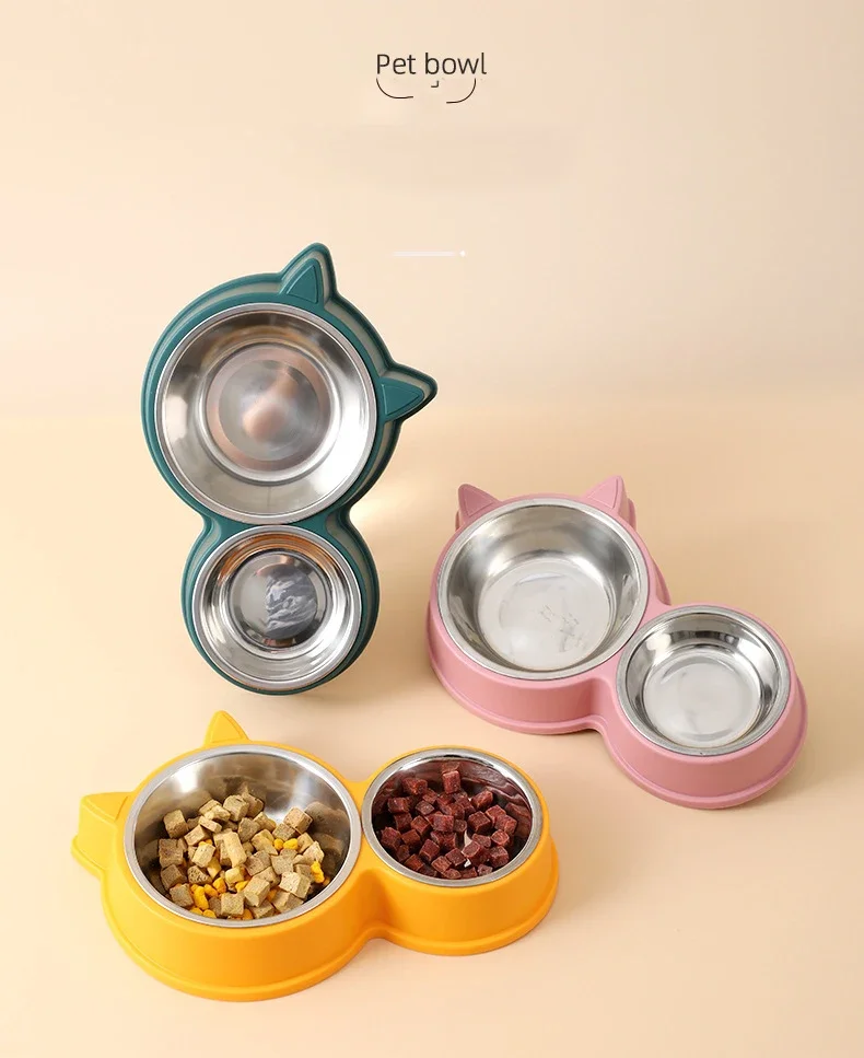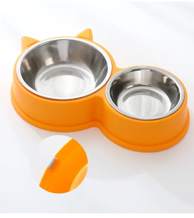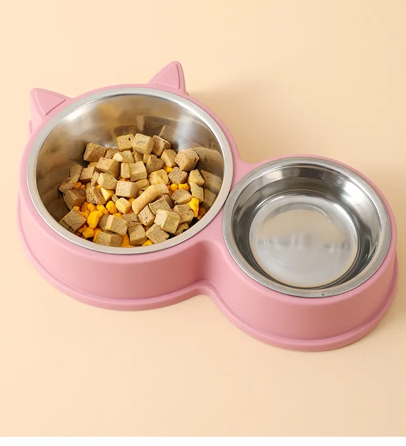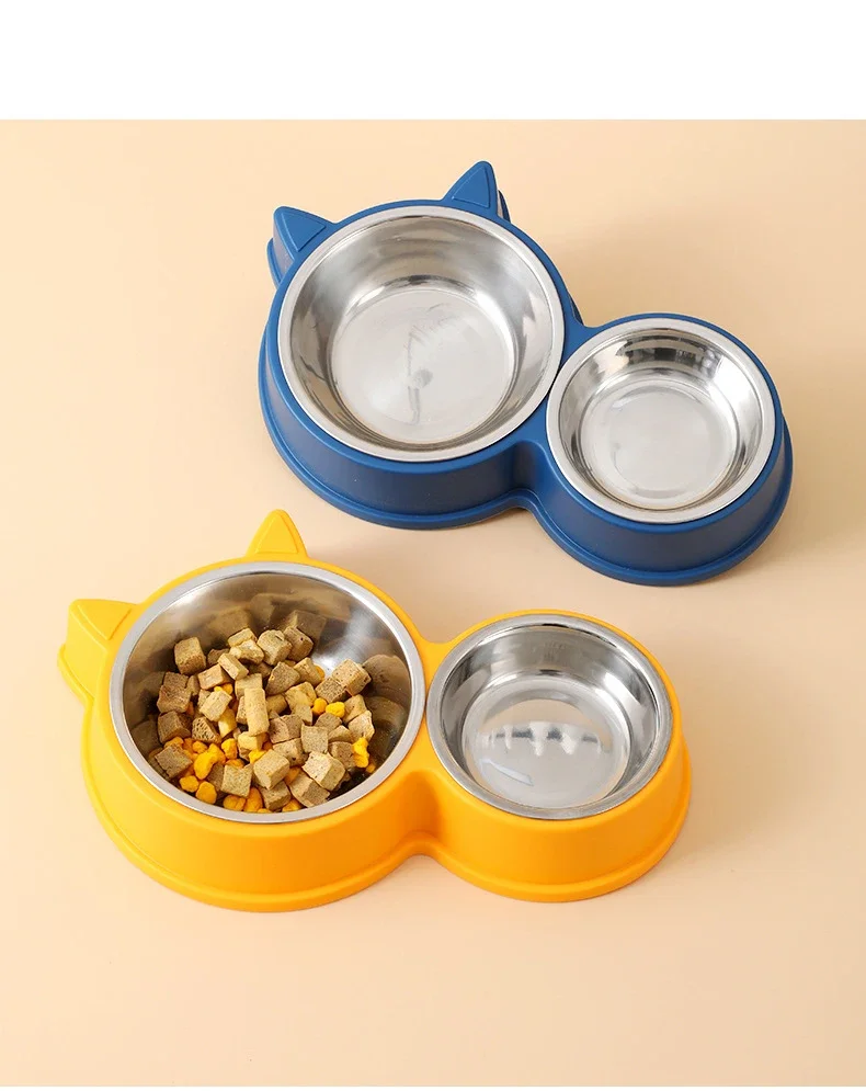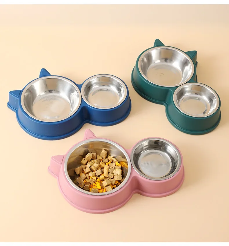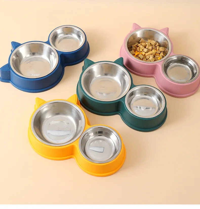 New puppy Kitten feeding supplies Two pets bowls Dog food drinker Stainless steel pet drinking dish Feeders access device