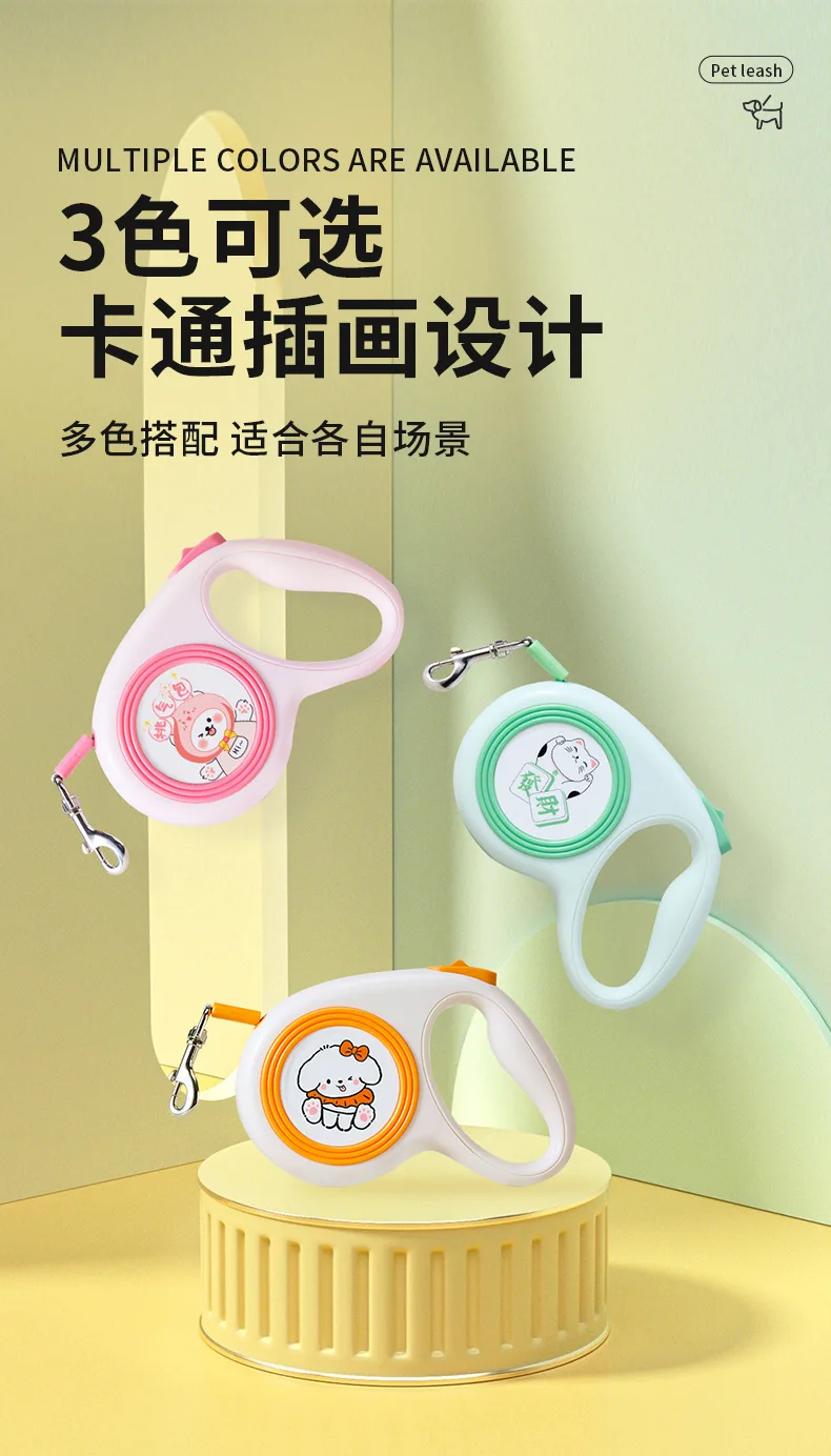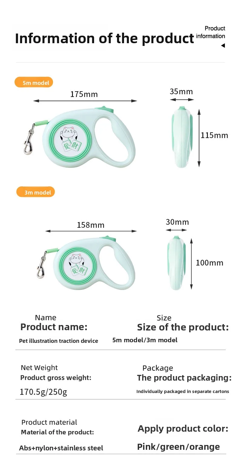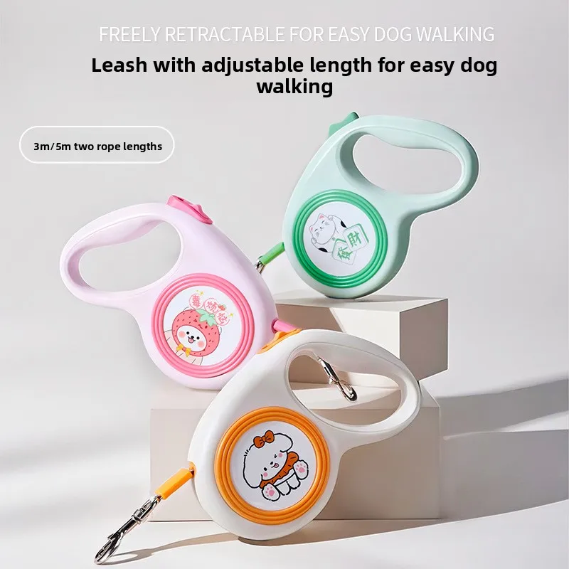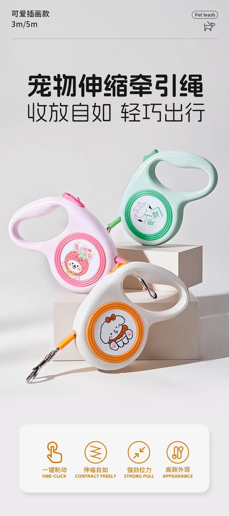 New Retractable Leash Cute Illustration Pattern Dog Leash Automatic Retractable Dog Rope Pet Products