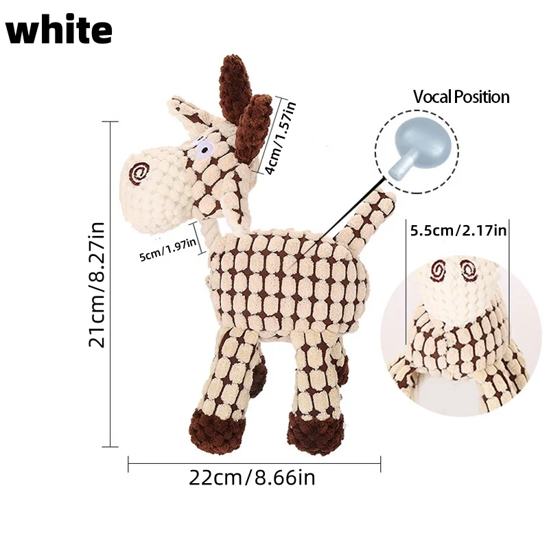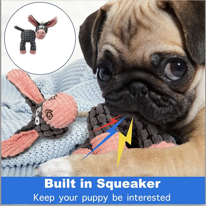 1.Juguete de peluche con sonido, lindo compañero para mascotas.Interacción divertida voz tranquilidad mordida, el amor no suelta la boca.