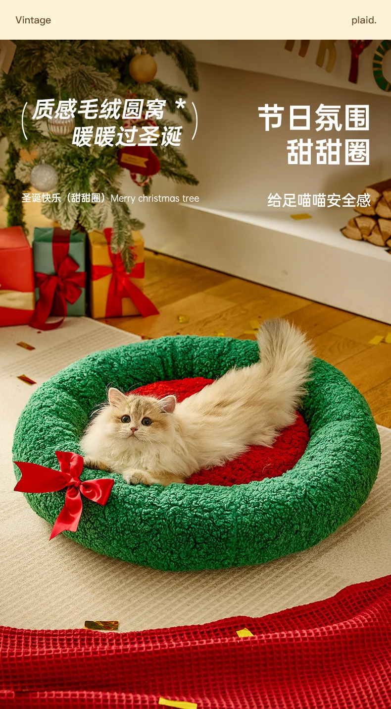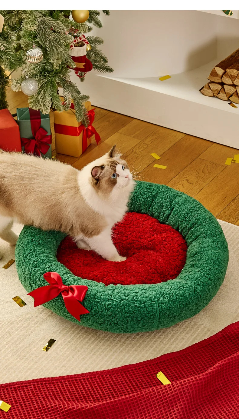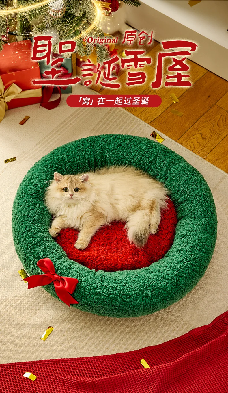 Nido cálido para gatos para invierno, perrera de Navidad semicerrada para dormir profundo, cama cálida para perros y gatos, suministros para mascotas