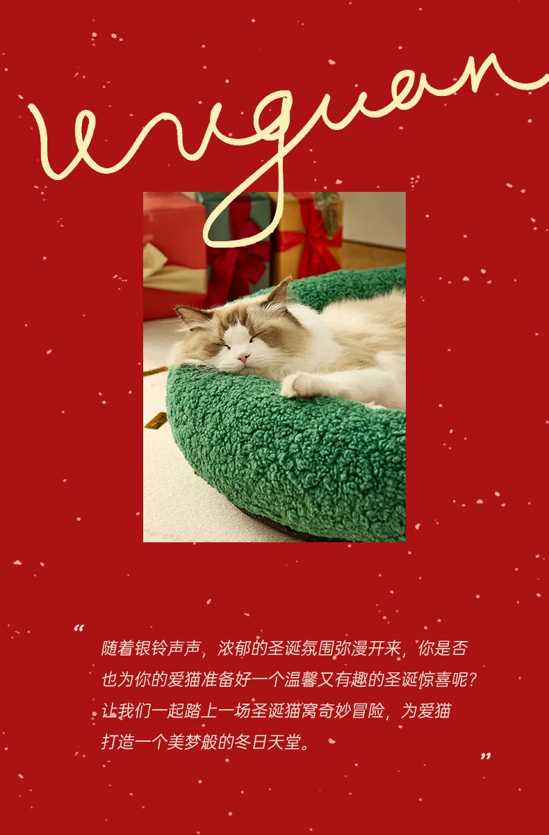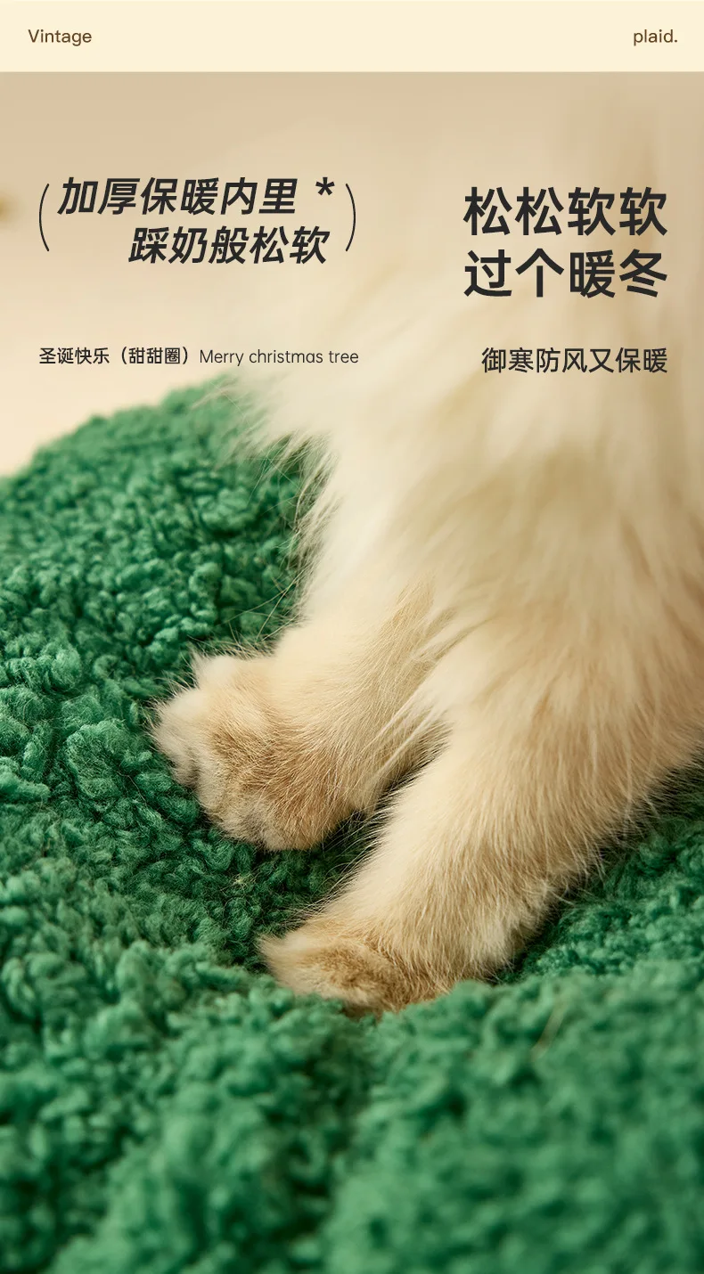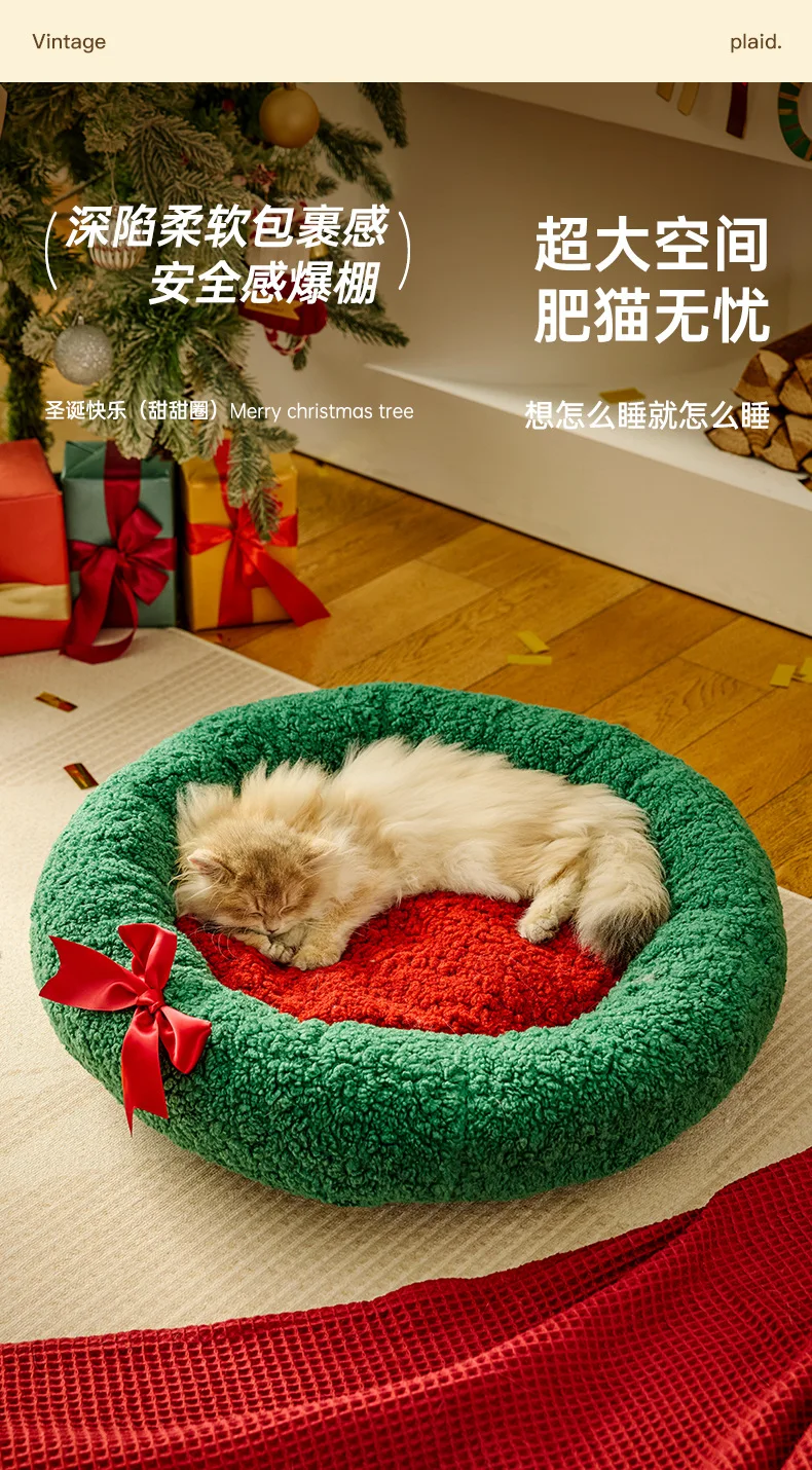 Nido cálido para gatos para invierno, perrera de Navidad semicerrada para dormir profundo, cama cálida para perros y gatos, suministros para mascotas