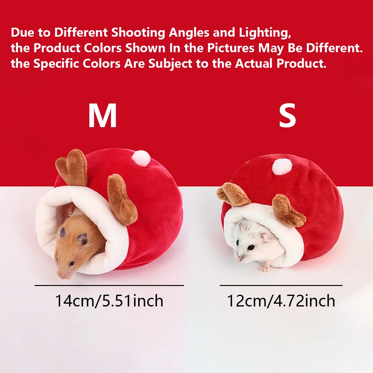 Nido cálido para hámster con diseño de asta de ciervo navideño, adecuado para animales pequeños.Casa pequeña navideña con colchoneta semi-cerrada con aislamiento de tapete desmontable, muy adecuada para hámsteres, osos dorados, deslizadores de azúcar, virutas, etc.