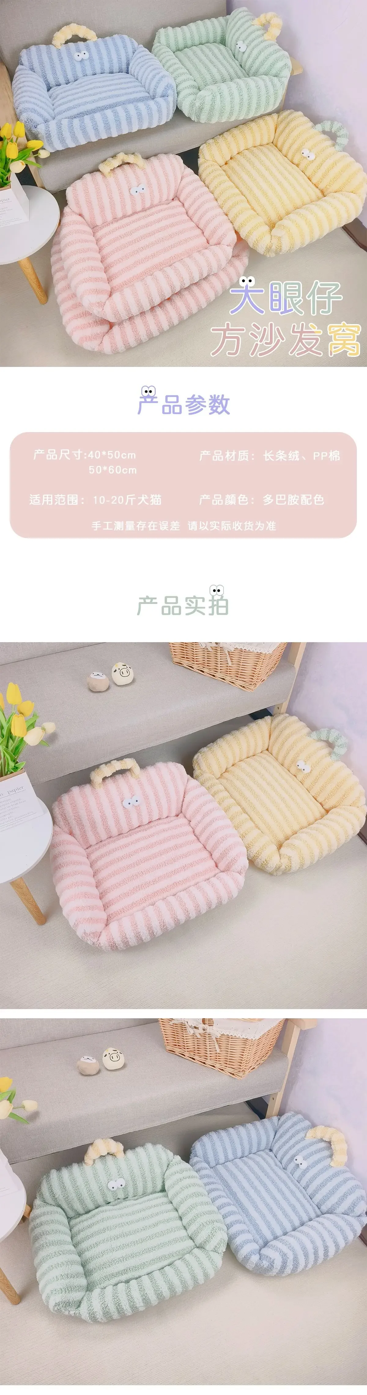 Nido cuadrado de ojos grandes para mascotas, cama de algodón, sofá para mascotas, cálido, Otoño e Invierno