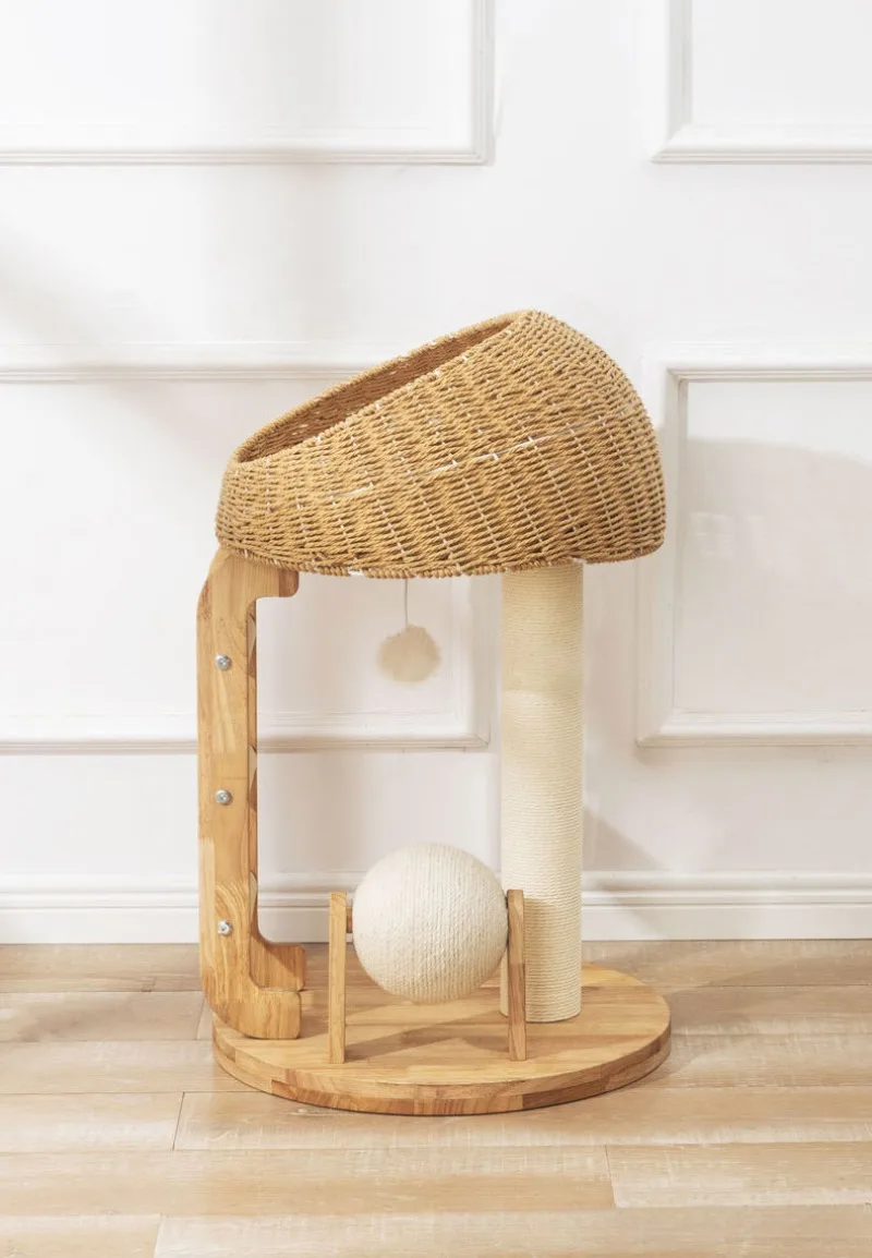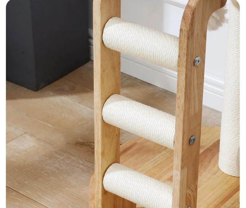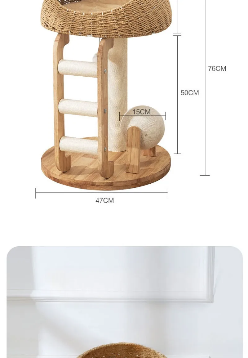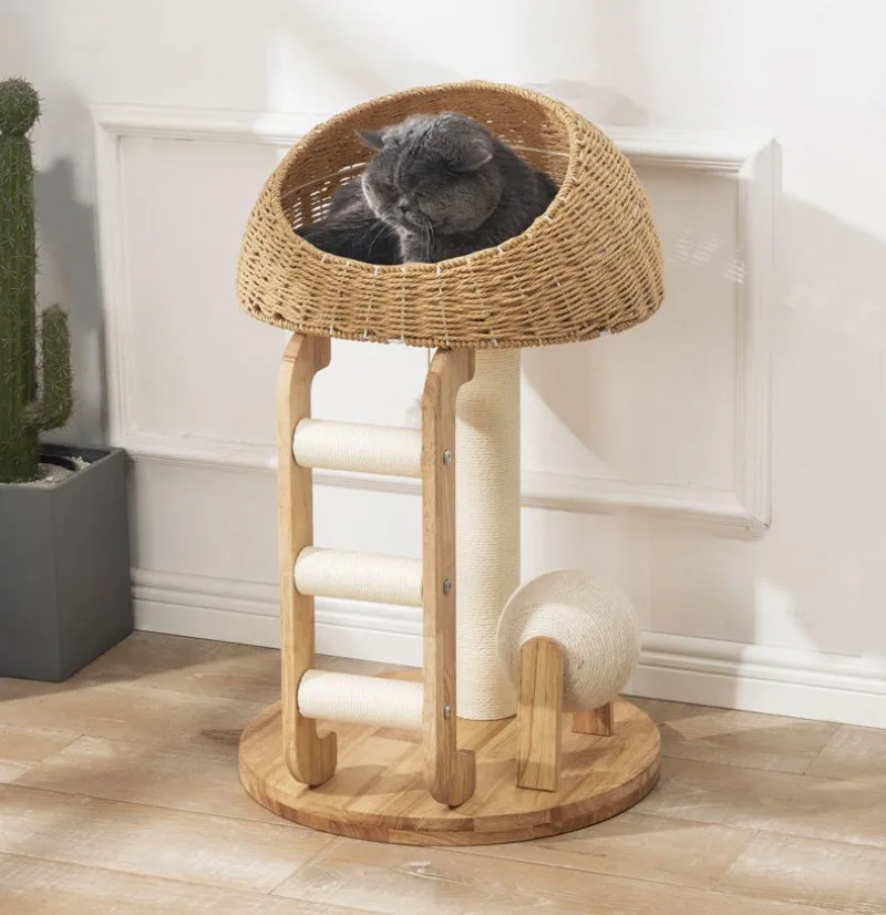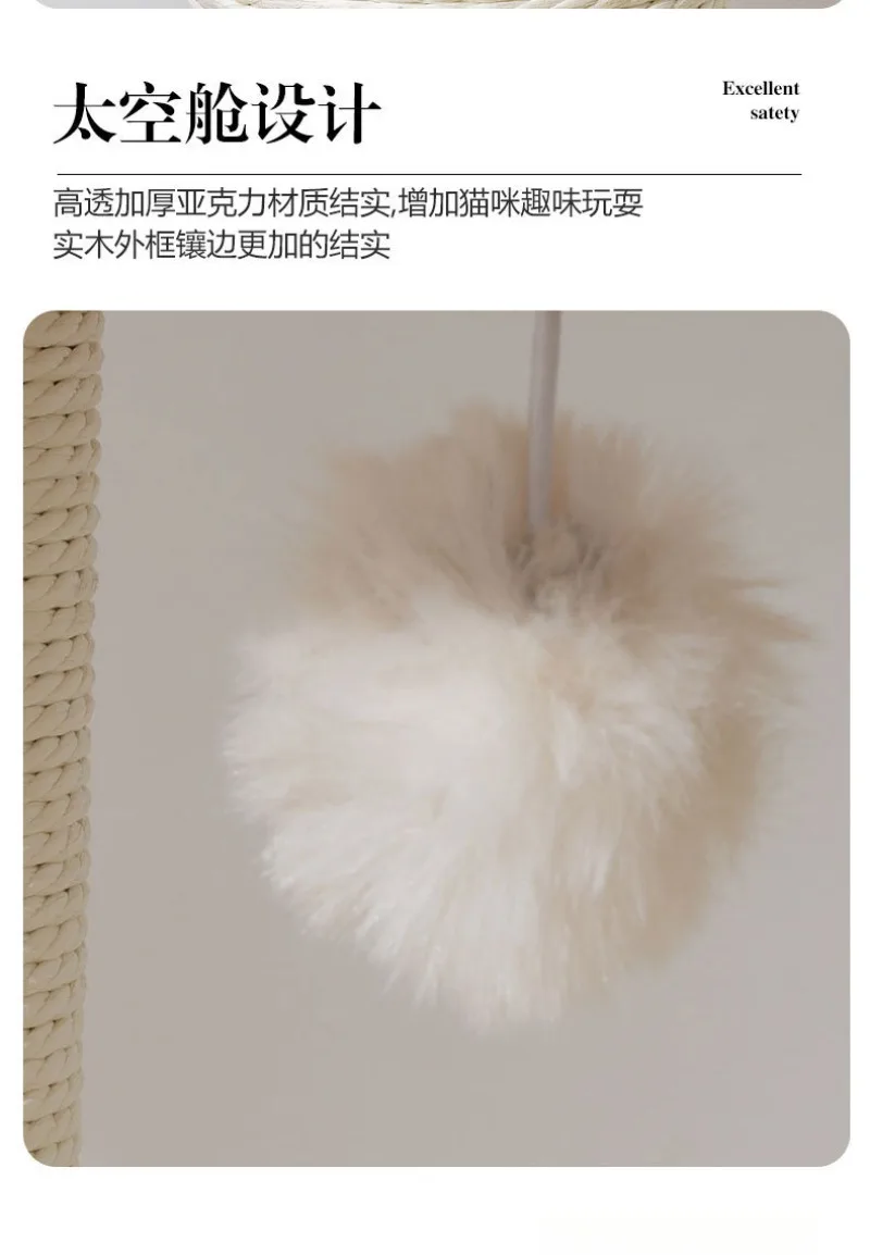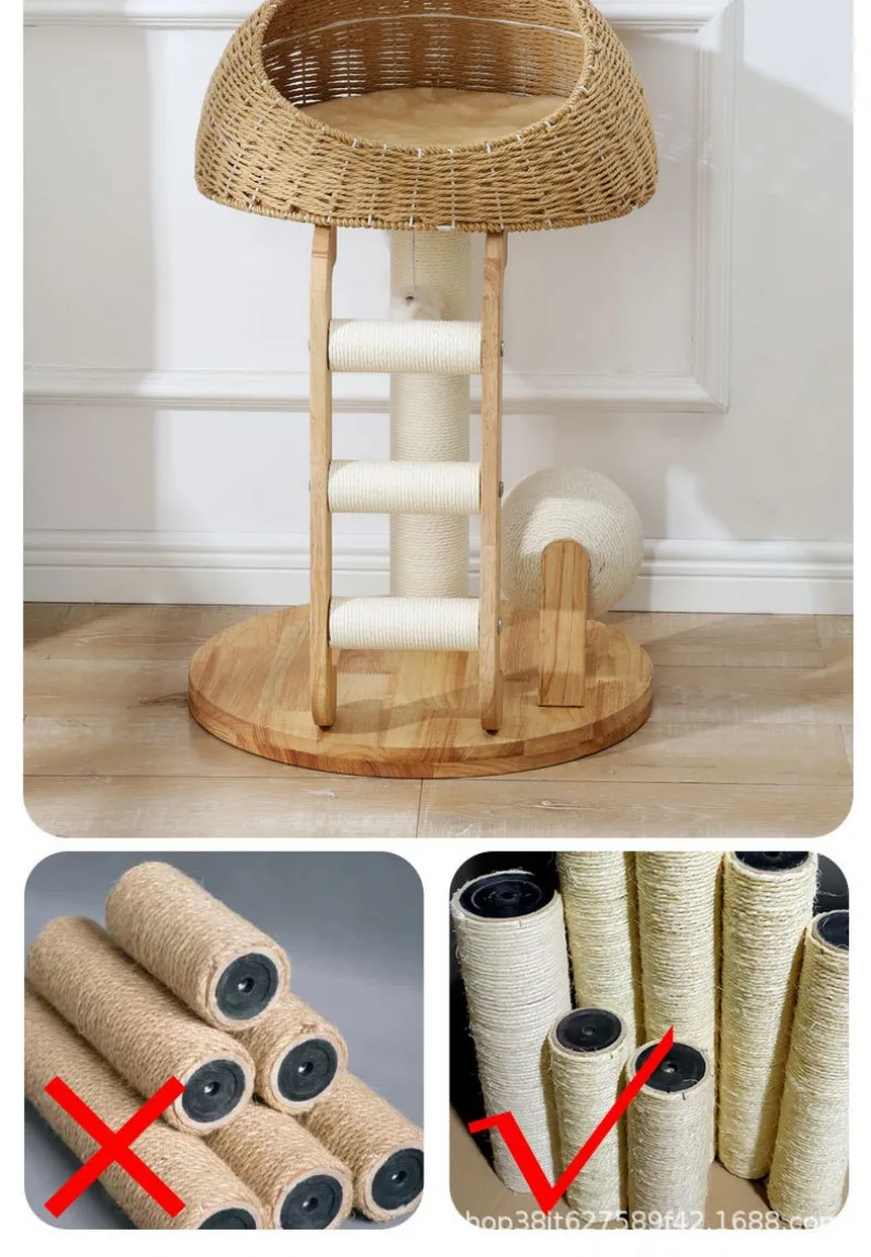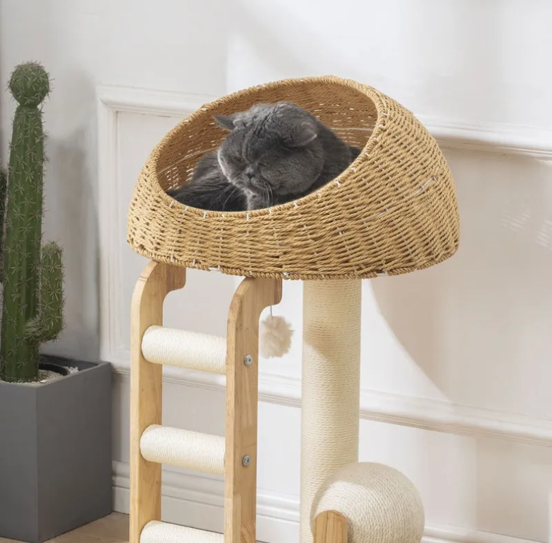 Descripción:Marco de escalada para gatos de madera maciza, nido para gatos, árbol para gatos, cápsula espacial cilíndrica de sisal, estante grande para gatos