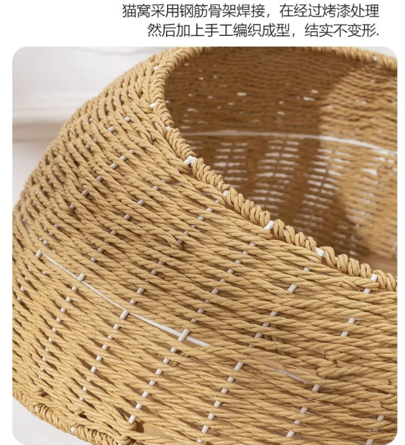 El nido del gato está soldado con un esqueleto de acero, que se trata con pintura y luego se teje a mano para formar, que es fuerte y no se deforma.