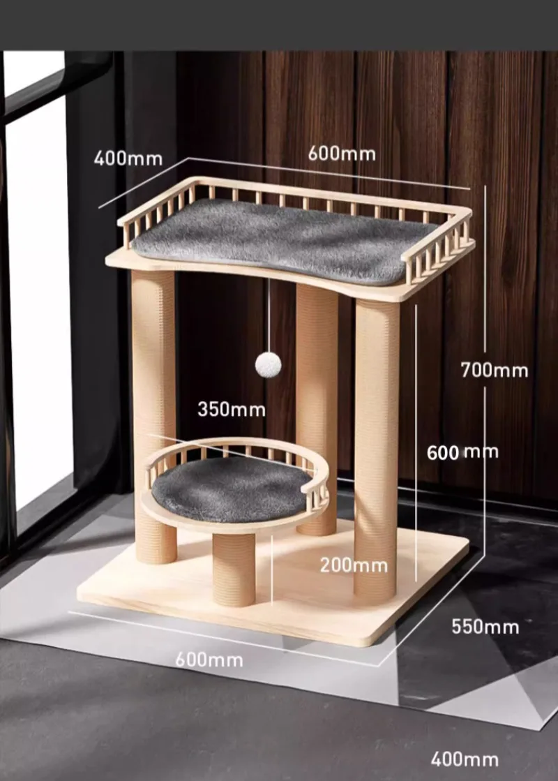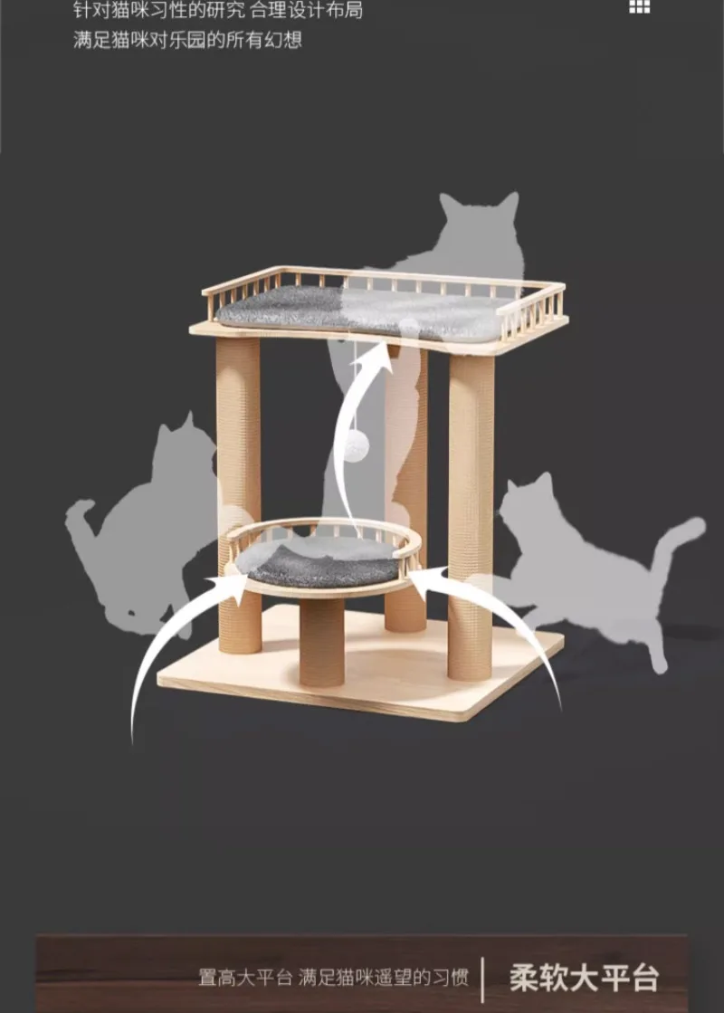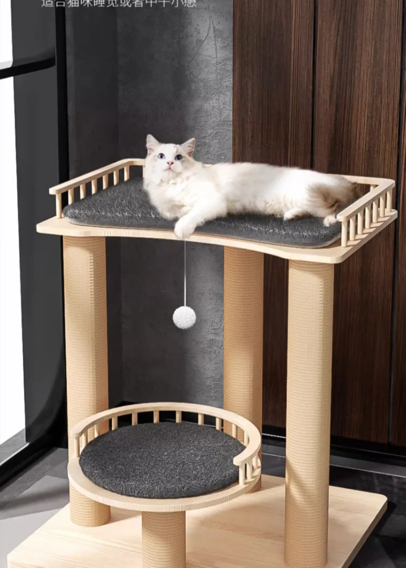 Nido de escalada para gatos, tablero rascador de Sisal, estante de madera maciza para productos grandes para gatos, suministros de muebles, torre de juguete para interiores