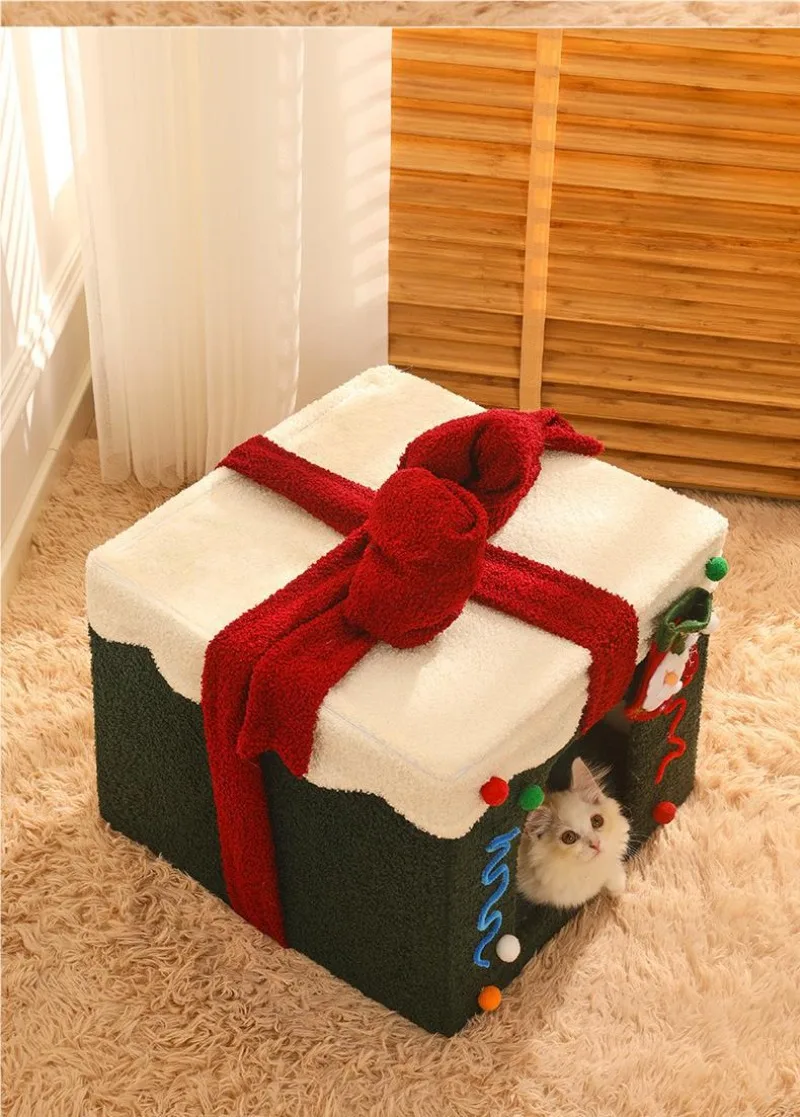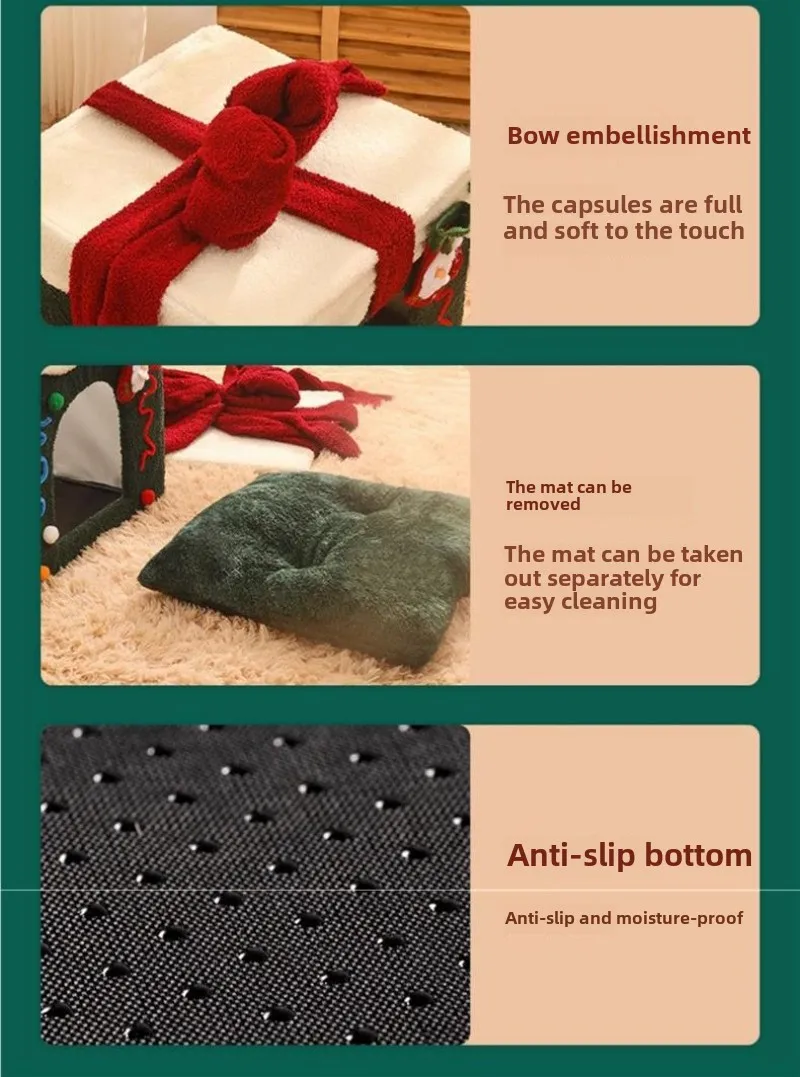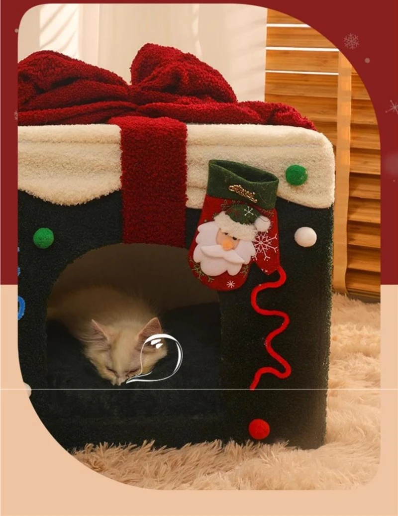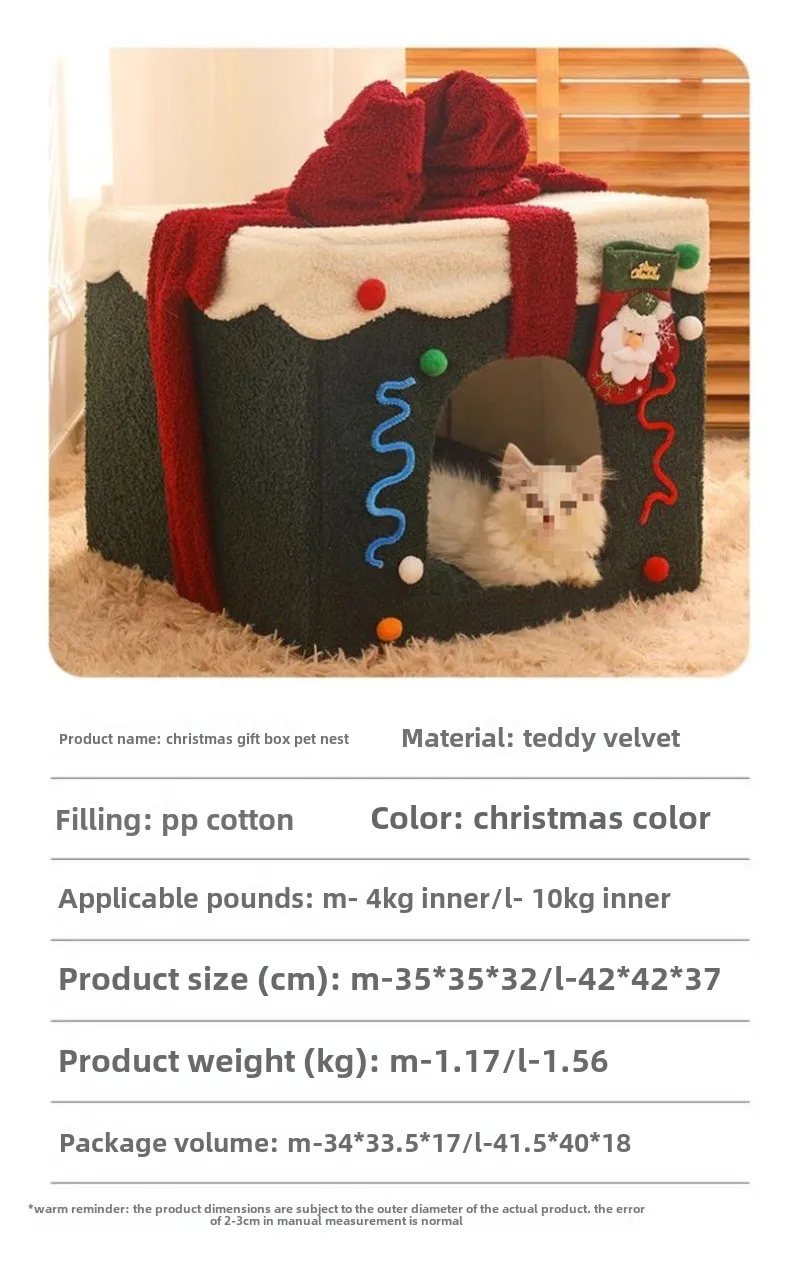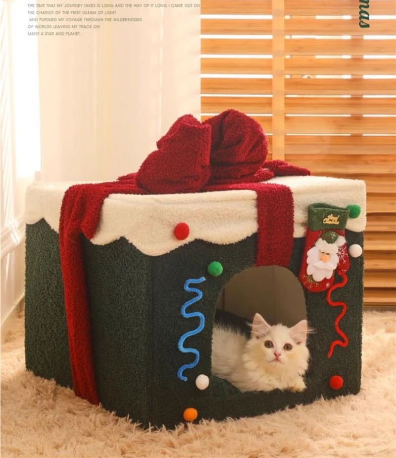 Nido de gato con diseño de Festival de Navidad, cálido, gran espacio, cerrado para invierno, Perro pequeño, accesorios para productos para mascotas, Otoño e Invierno