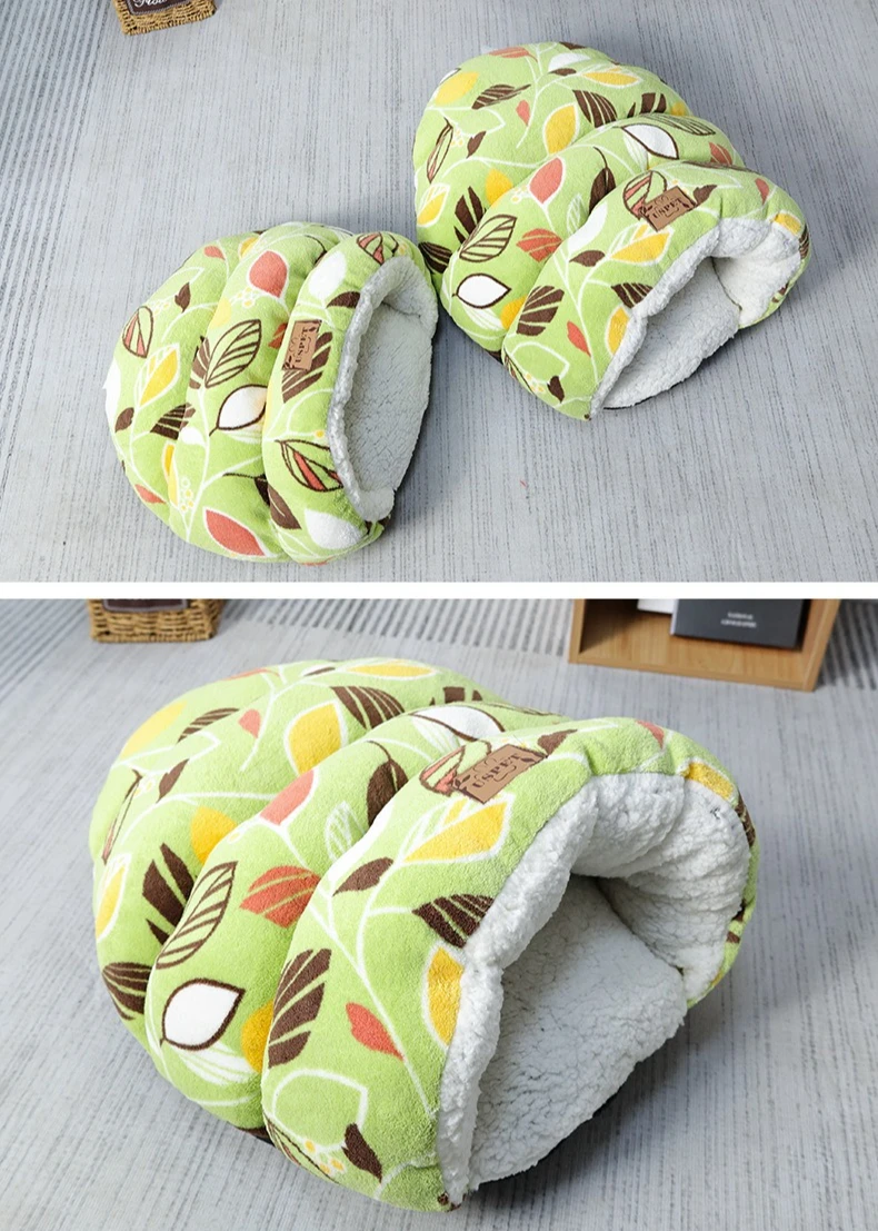 Nido de gato esponjoso cálido invierno lindos zapatillas moda nido especial productos para mascotas semicerrado