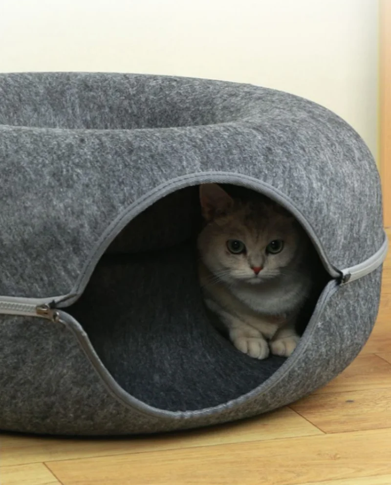 Bonita cama, mi gato la probó inmediatamente. Gracias también por el juguete de pelota. Lo único que pedí gris oscuro pero obtuvo bastante negro. Pero no es tan mal. ¡Nos gusta!