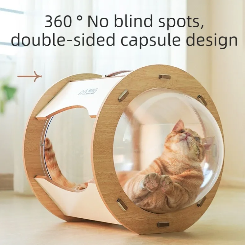 Nido para gatos con cápsula de madera 360 ° Cápsula bilateral portátil de gran espacio, nido para gatos, poste rascador, camas para dormir, suministros para mascotas