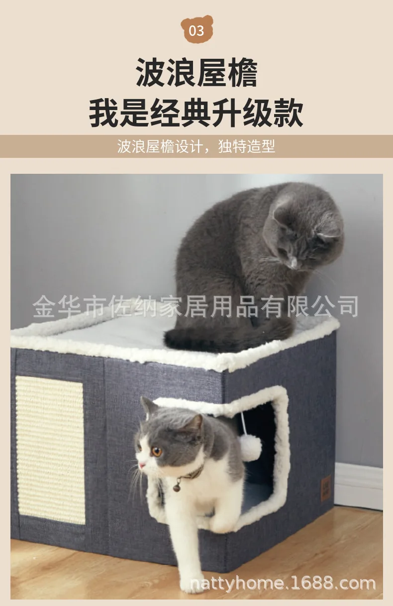 Nido para gatos con forma de cubo para mascotas, tablero para rascar gatos, perrera plegable Universal para todas las estaciones, suministros para mascotas, cama para perros
