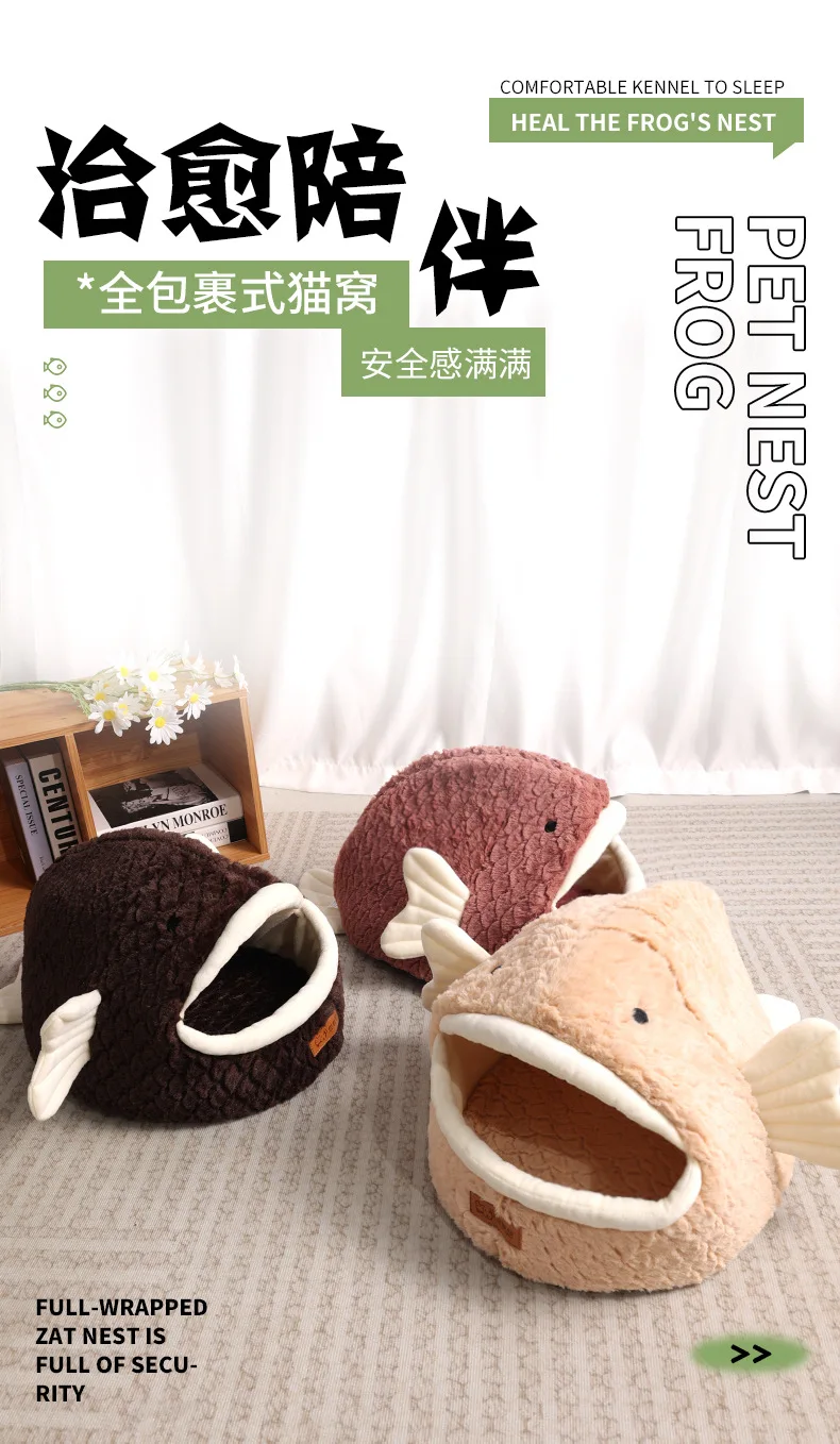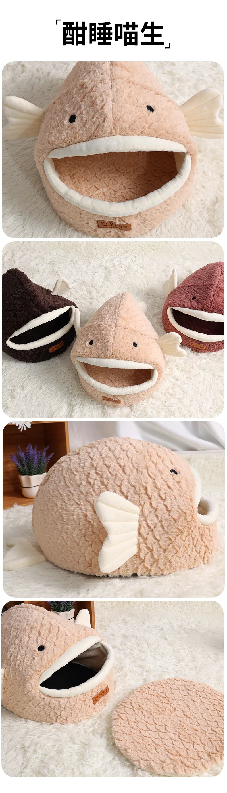 Nido para gatos Otoño e Invierno Cálido Agujero de perforación Perrera Jaula para mascotas Nido para mascotas a rayas de esponja Semi-cerrado