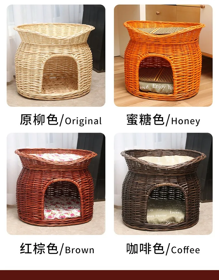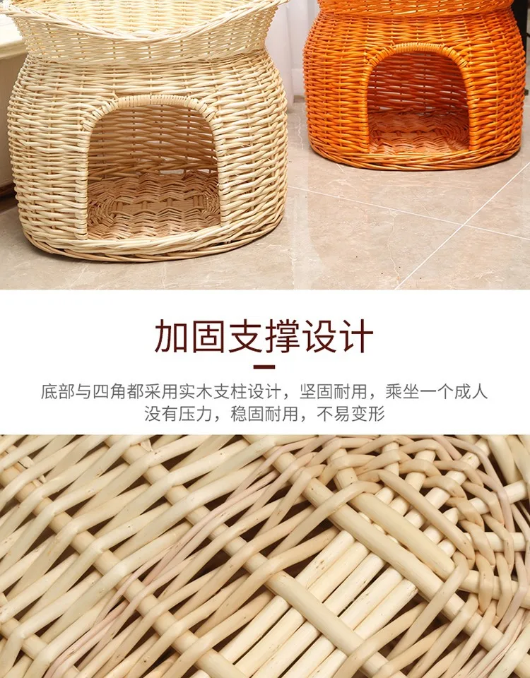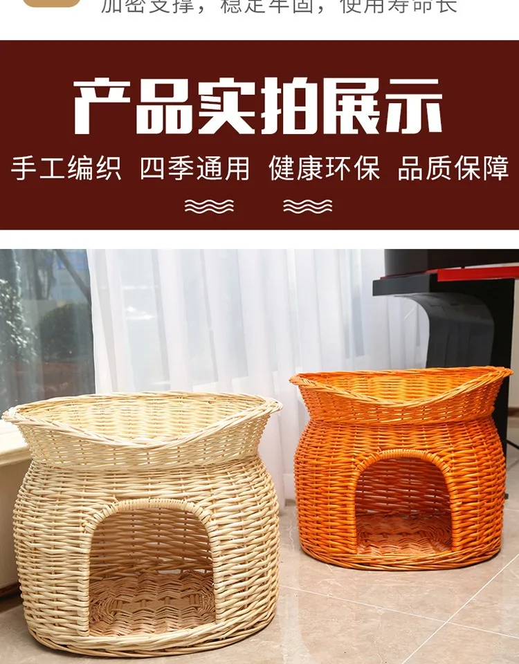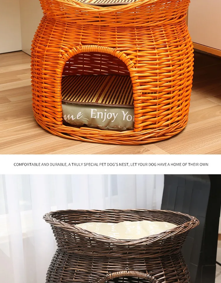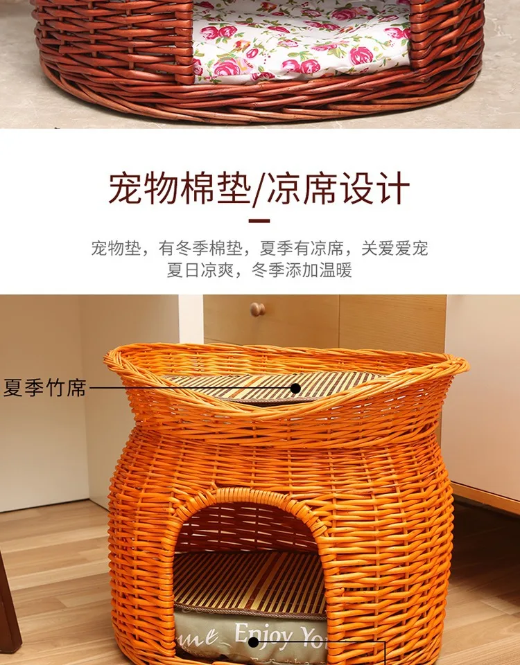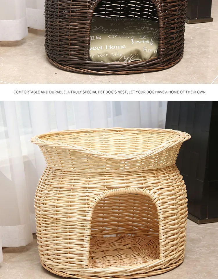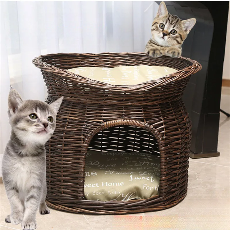 Nido para gatos de ratán Universal para todas las estaciones, estera de verano, extraíble, lavable, Villa para perros, casa para gatos cerrada de doble capa, nido para mascotas para dormir