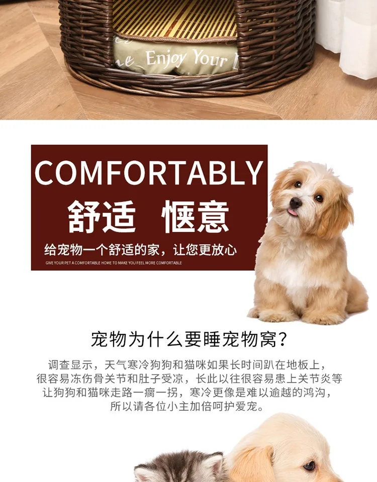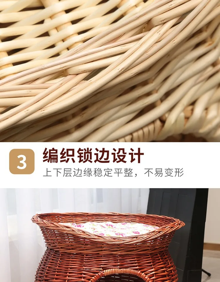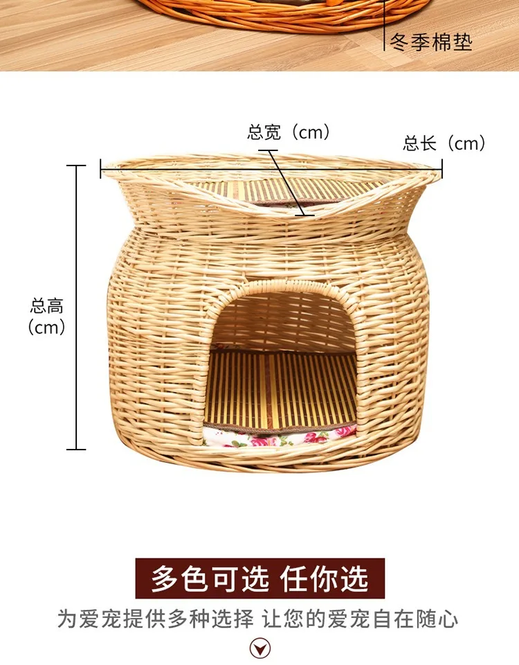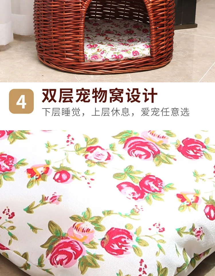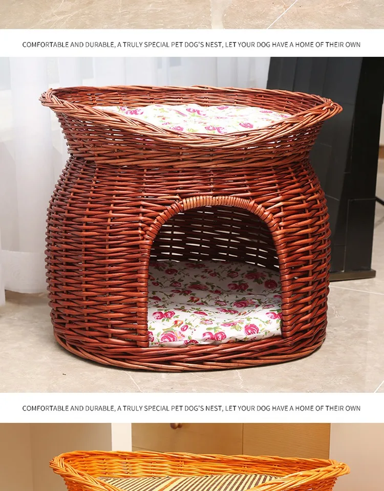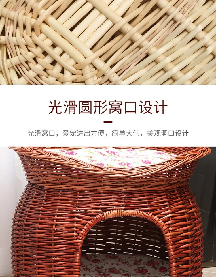 Nido para gatos de ratán Universal para todas las estaciones, estera de verano, extraíble, lavable, Villa para perros, casa para gatos cerrada de doble capa, nido para mascotas para dormir