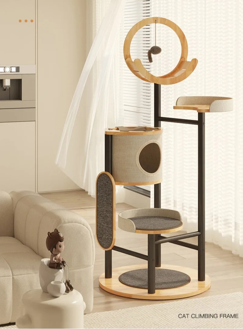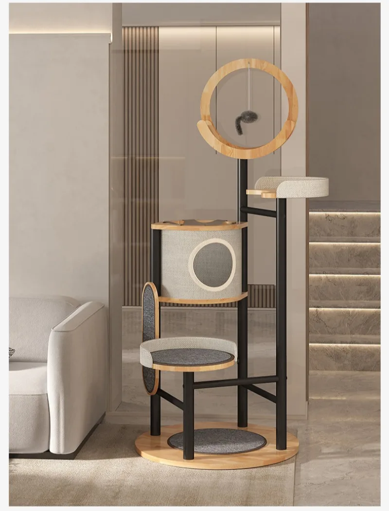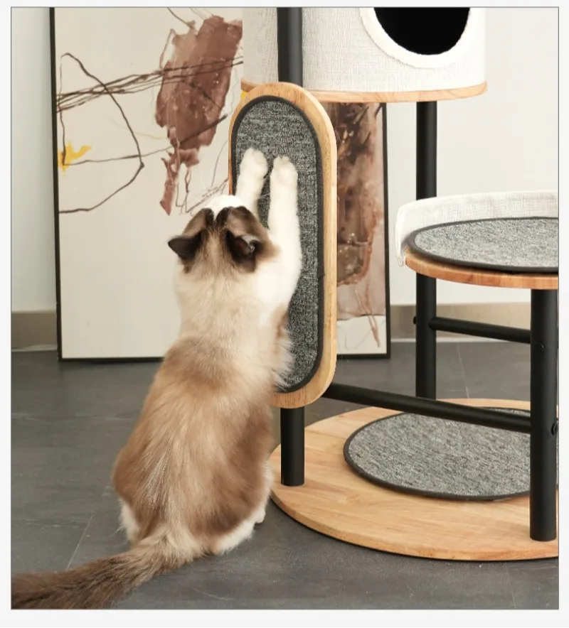 Descripción:Cat Crawler de madera maciza, hierro forjado, madera de caucho, juguetes para gatos, nido de gato, manta de garra para molienda, uso multigato