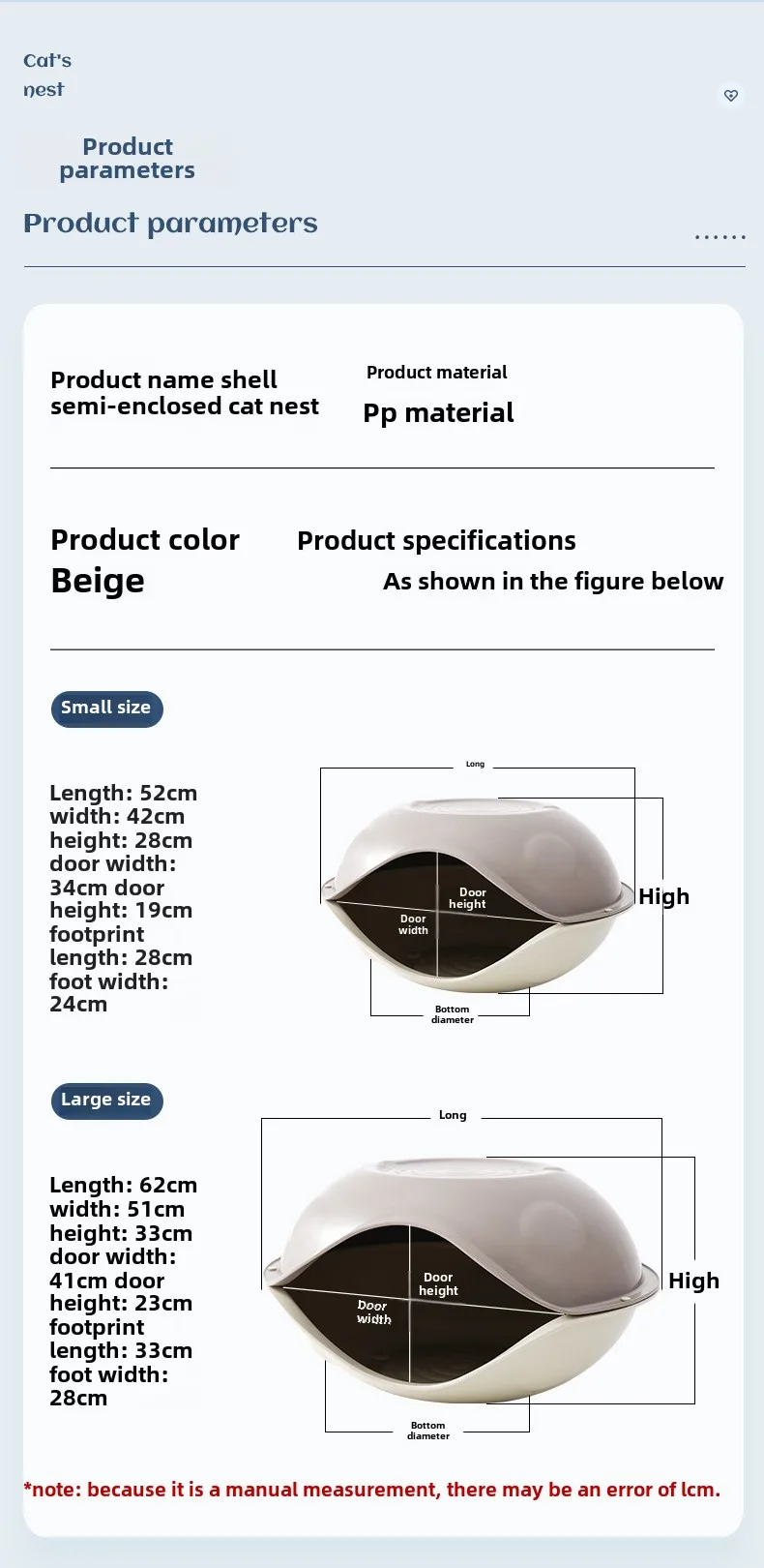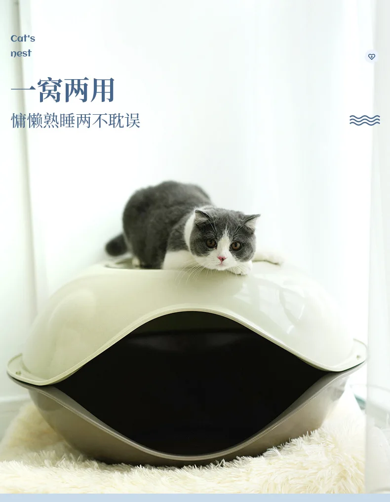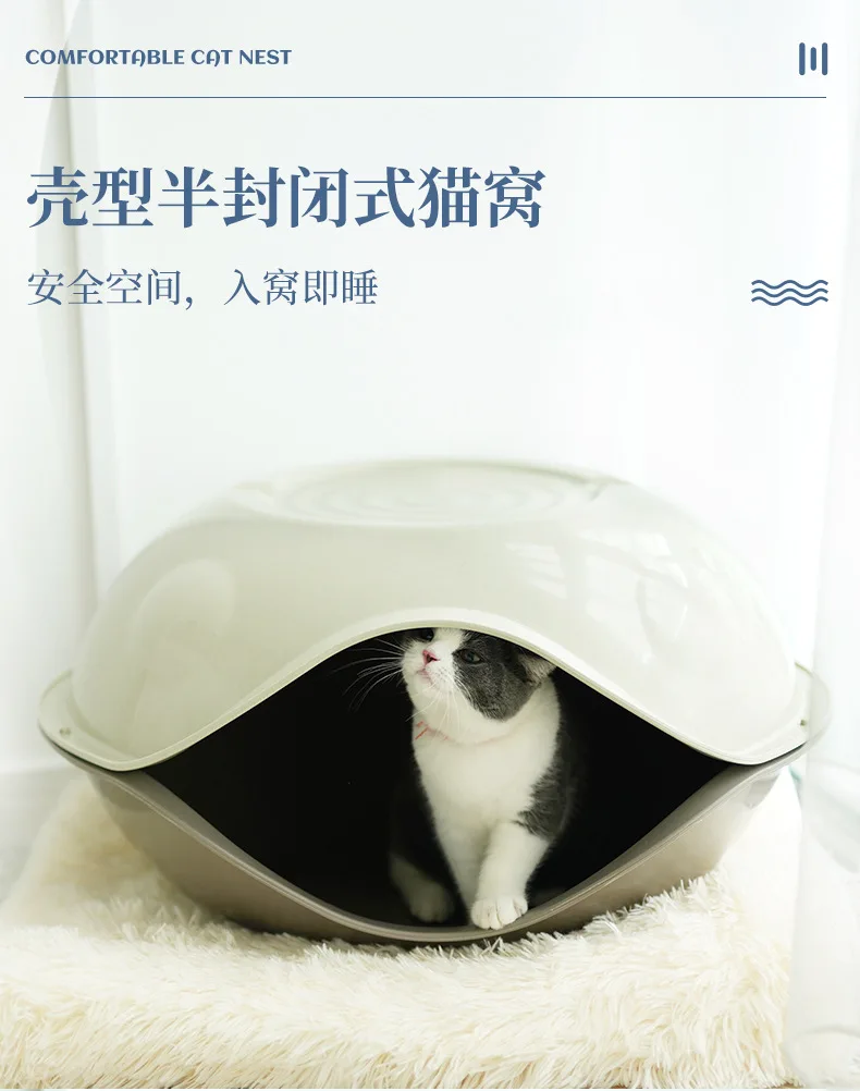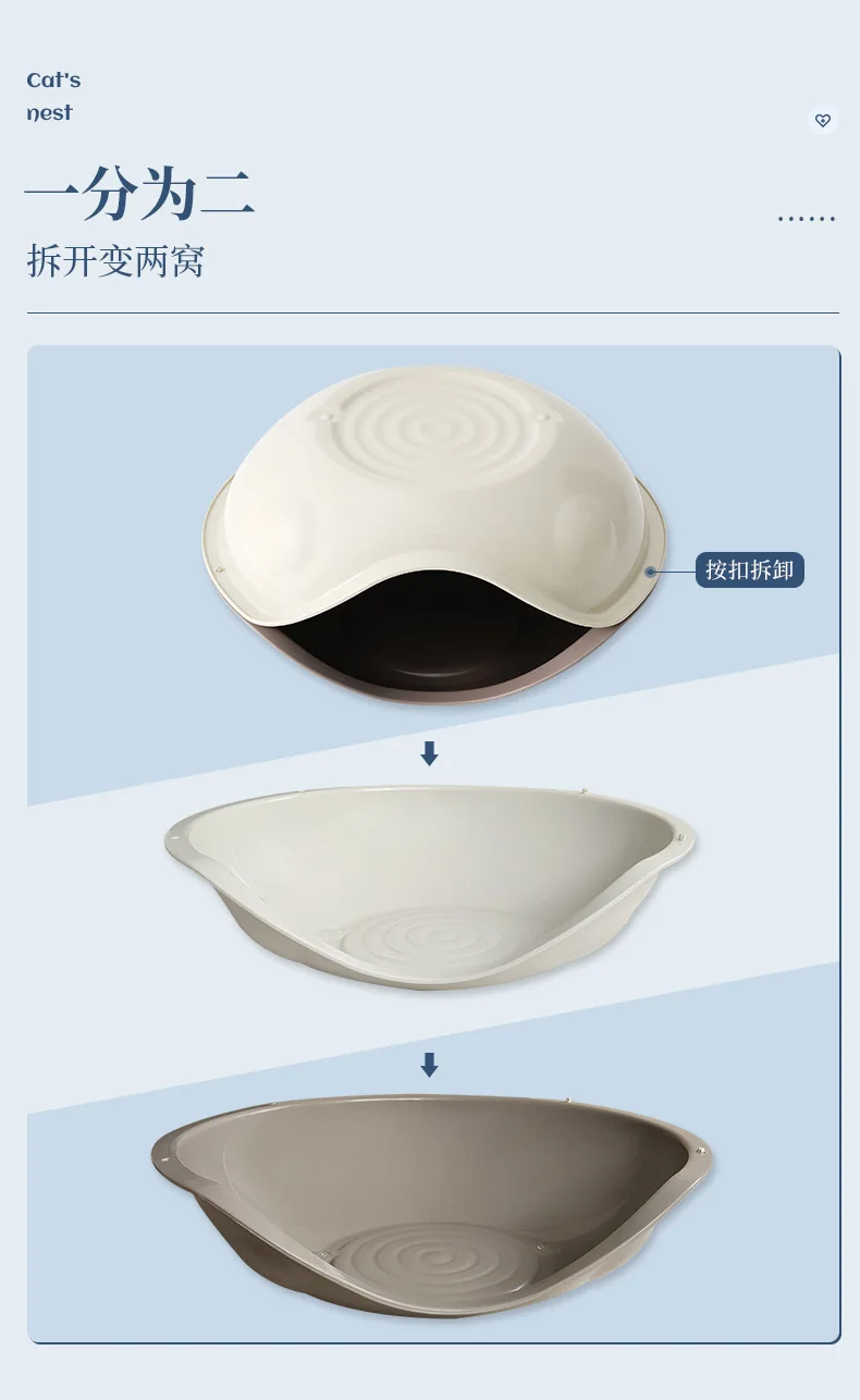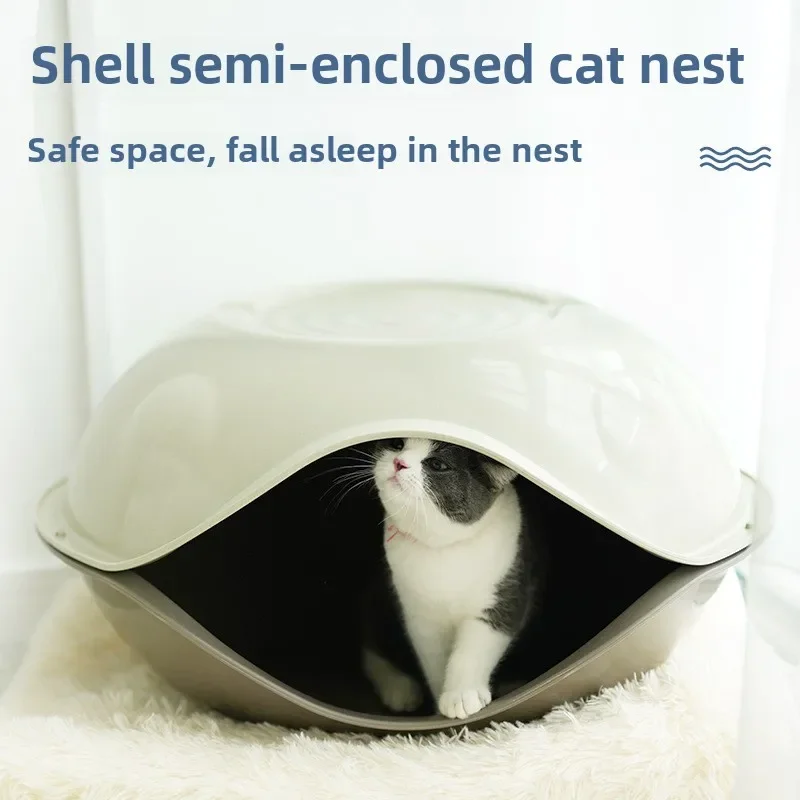 Nido para gatos tipo cáscara de huevo Nido para mascotas semicerrado Casa para gatos extraíble y lavable Universal y portátil en todas las estaciones