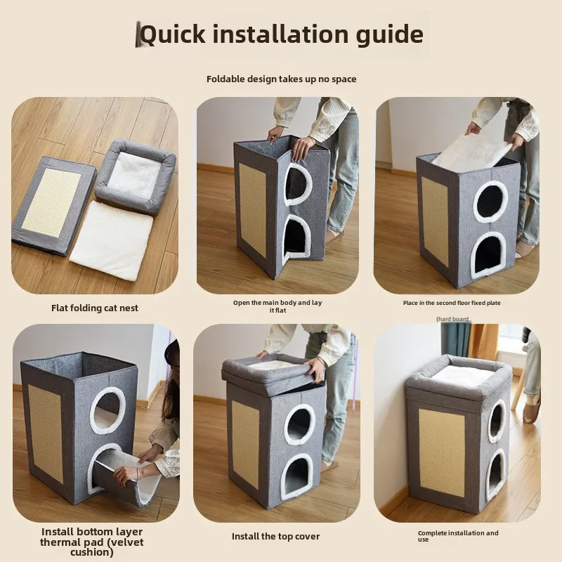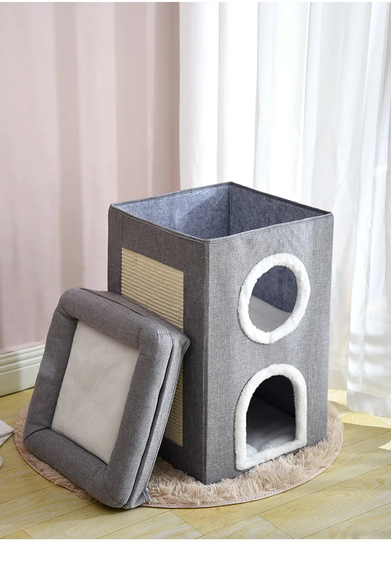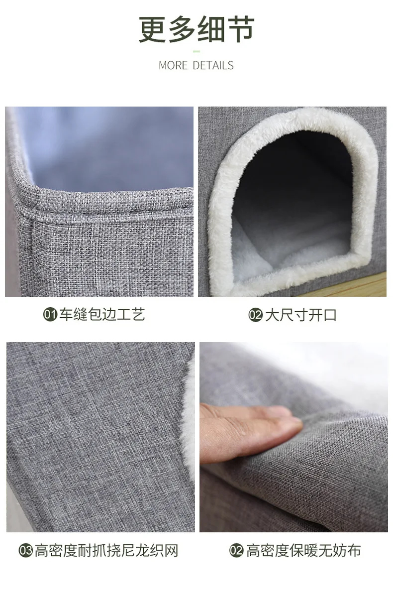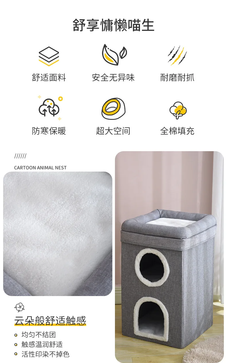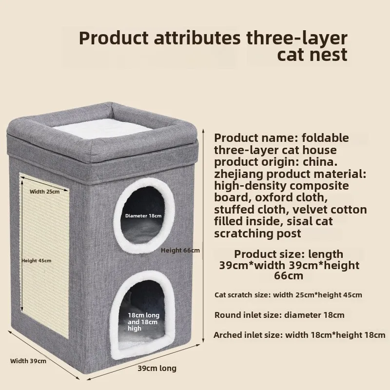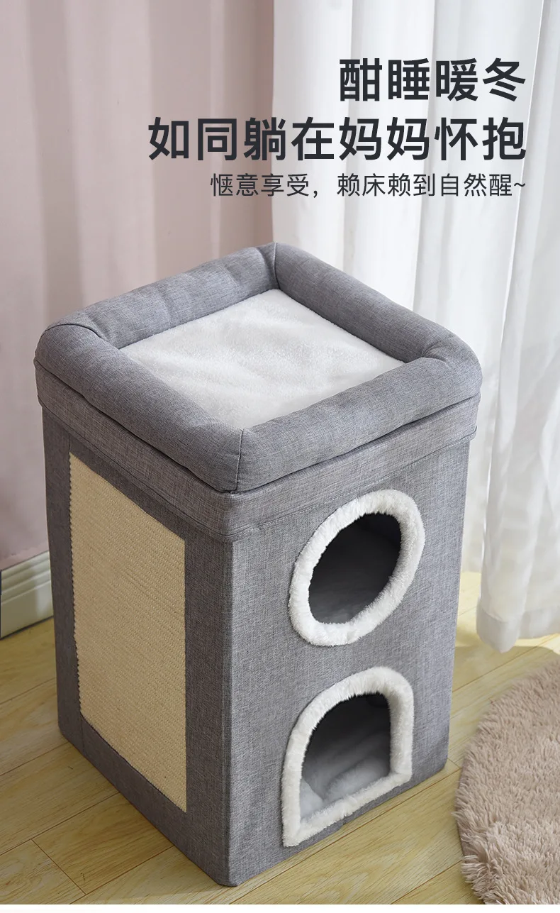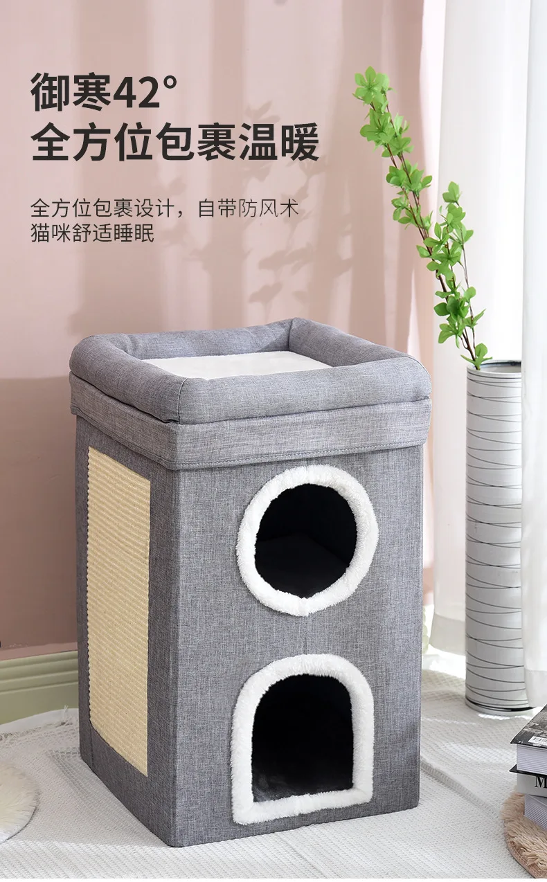 Nido para gatos de tres capas cálido en invierno, extraíble y lavable, totalmente cerrado y fácil de limpiar, nido para gatos grande plegable para las cuatro estaciones