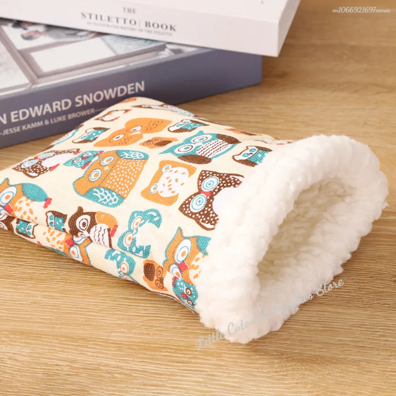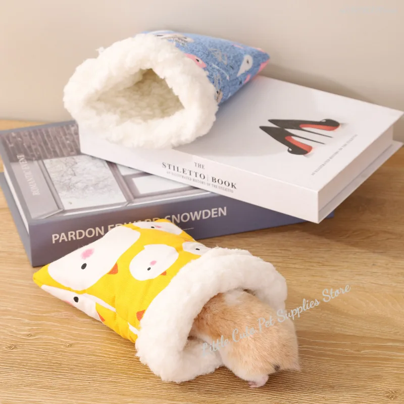 Nido de hámster de invierno, cama de hámster con diseño de dibujos animados de felpa suave y cómoda, saco de dormir de tela gruesa para conejillo de indias, accesorios para mascotas