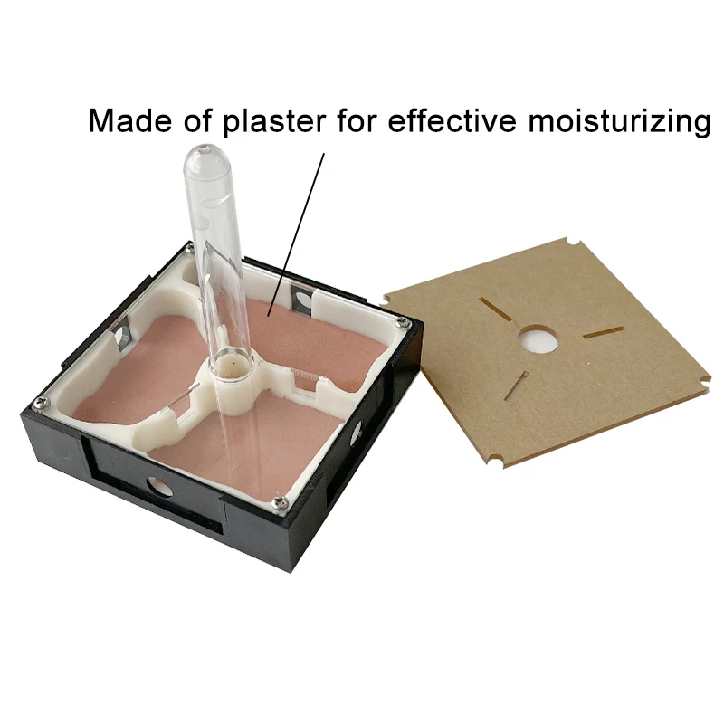 2. Área de nido de yeso que utiliza yeso como materiales, tiene una fuerte capacidad hidratante y es más adecuada para que vivan las hormigas.