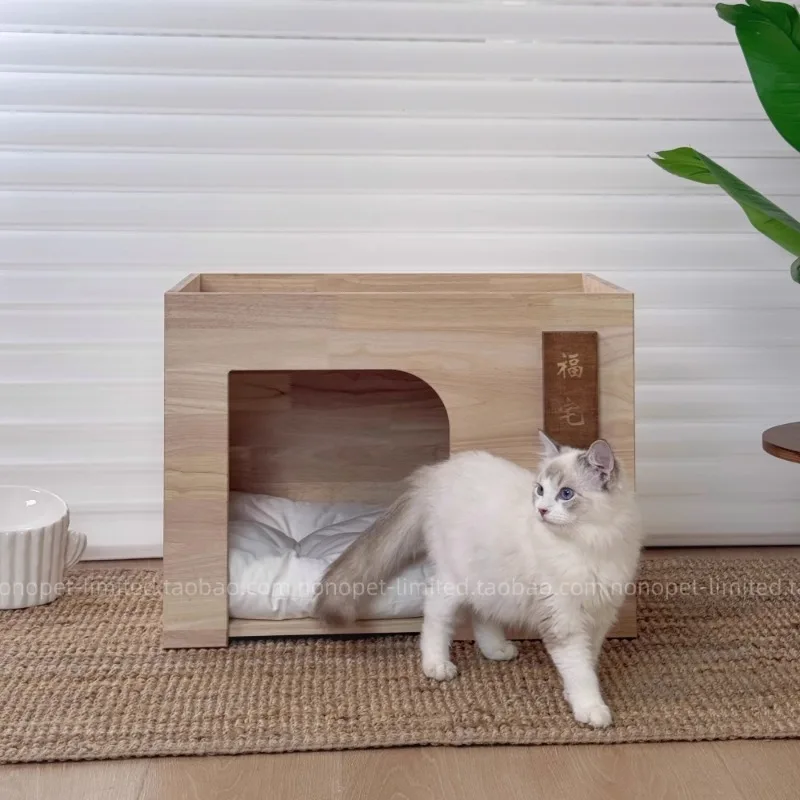 Nido de interior para mascotas, muebles de madera duraderos para mascotas, suministros para salón, cama con cojín, productos de decoración para el hogar para perros y gatos, accesorios