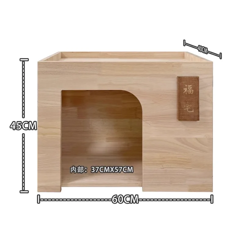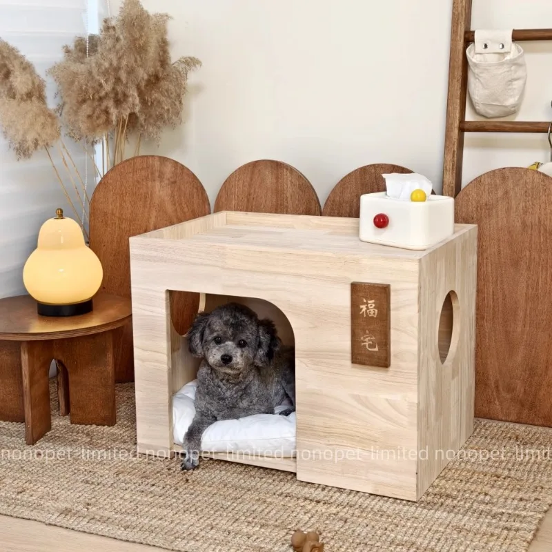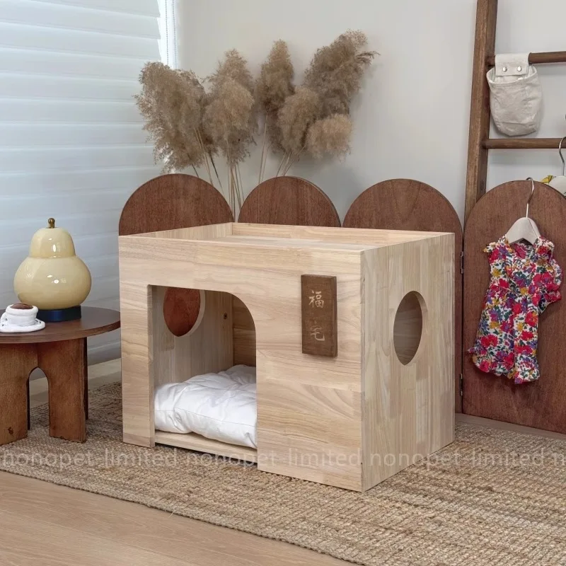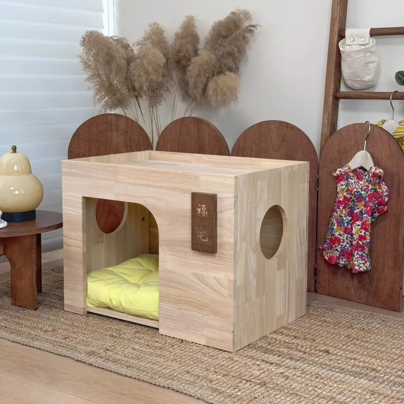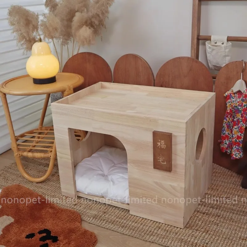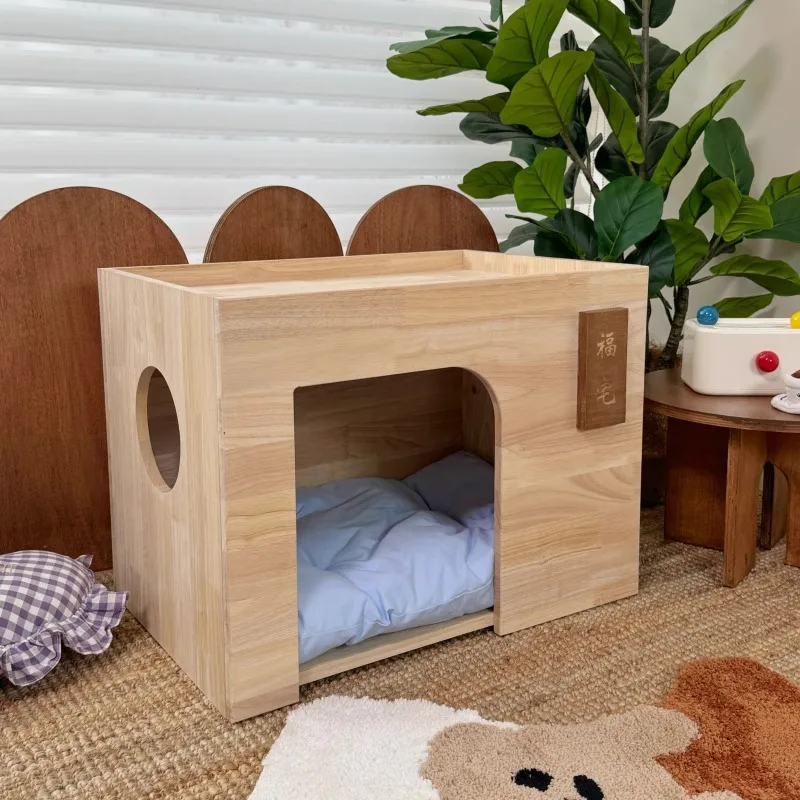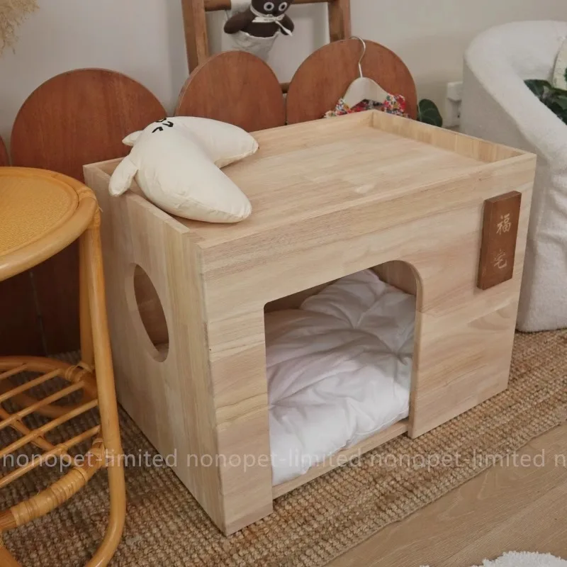 Nido de cama para las cuatro estaciones de madera de goma para perros y gatos Fu Cottage para mascotas