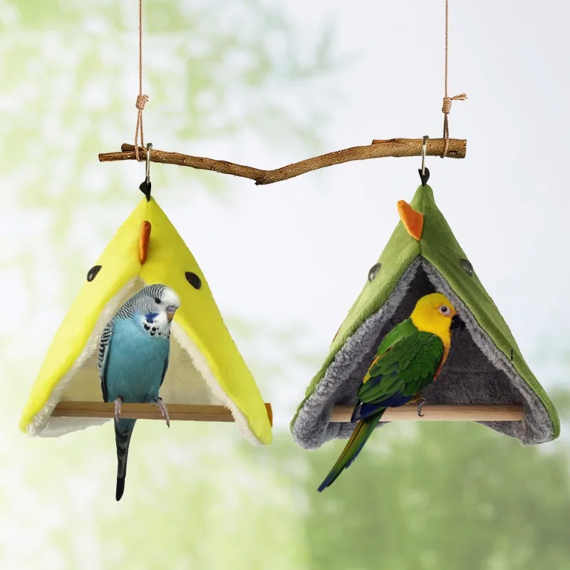 Nido de loro y pájaro bonito, hamaca suave de felpa para loros, cama colgante cálida, cabaña para acurrucarse, tienda de campaña para pájaros cálida, nido de pie, casa de juguete