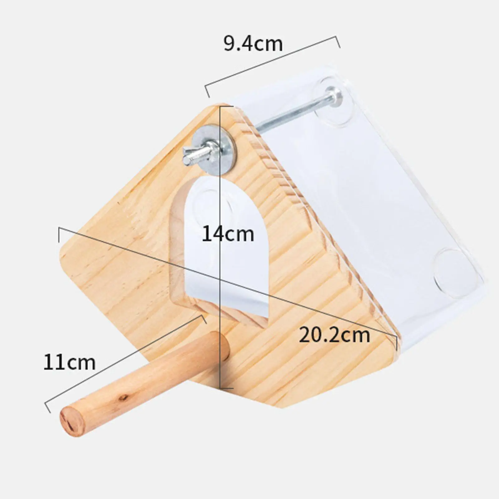 La caja de cría está construida con madera resistente y duradera, lo que garantiza un uso prolongado en diversos entornos de jaula. Su diseño permite instalarla tanto dentro como fuera de la jaula, fijándose con tornillos para una sujeción firme y estable.