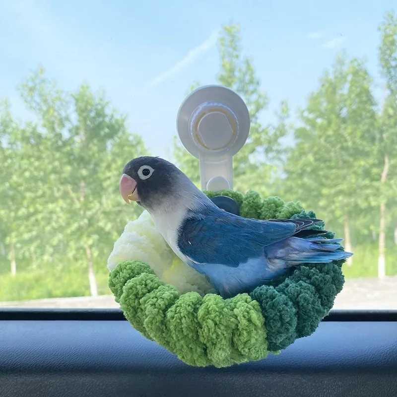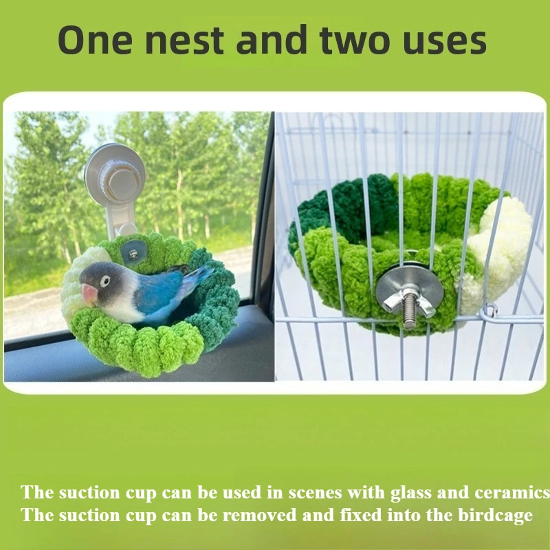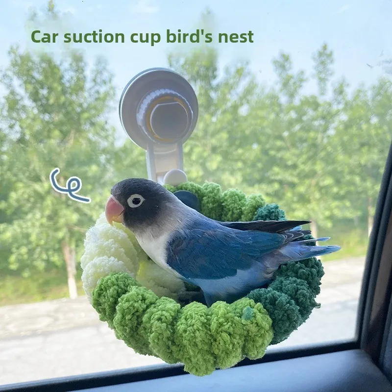 Nido de Pájaro con ventosa tejido a mano, vidrio de adsorción para interiores y exteriores, nidos de lana suave, productos para mascotas montados en vehículo