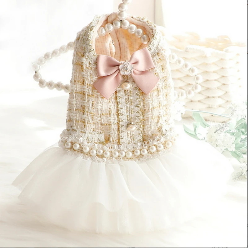 Noble cinturón a cuadros para mascotas, suéter de lana de perlas, abrigo, chaleco de ropa para perros, ropa linda Bomei de Yorkshire, ropa de otoño e invierno