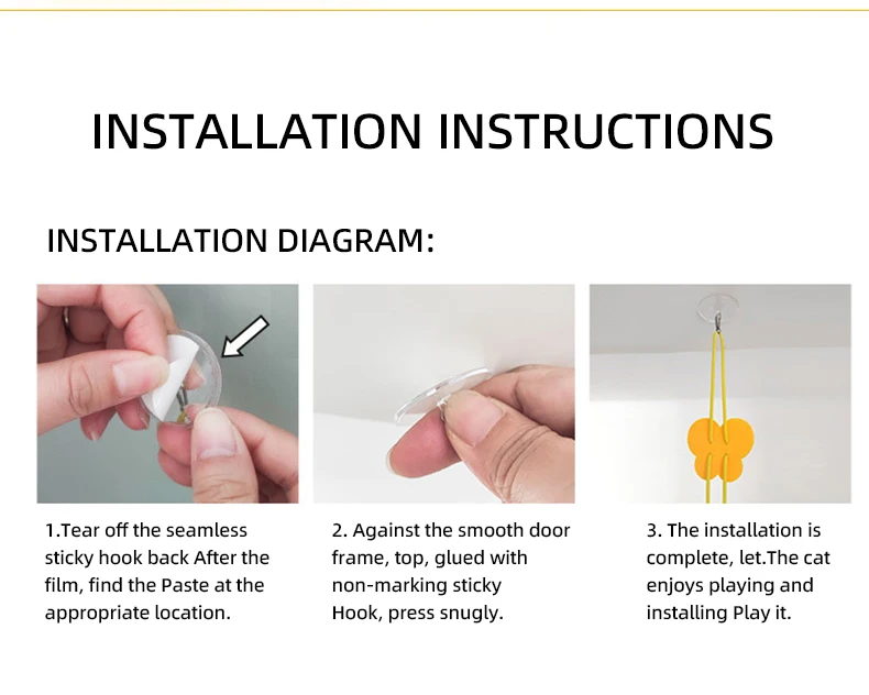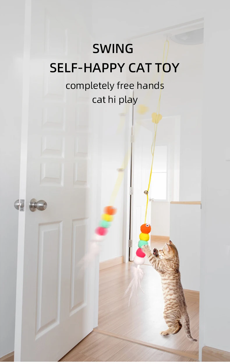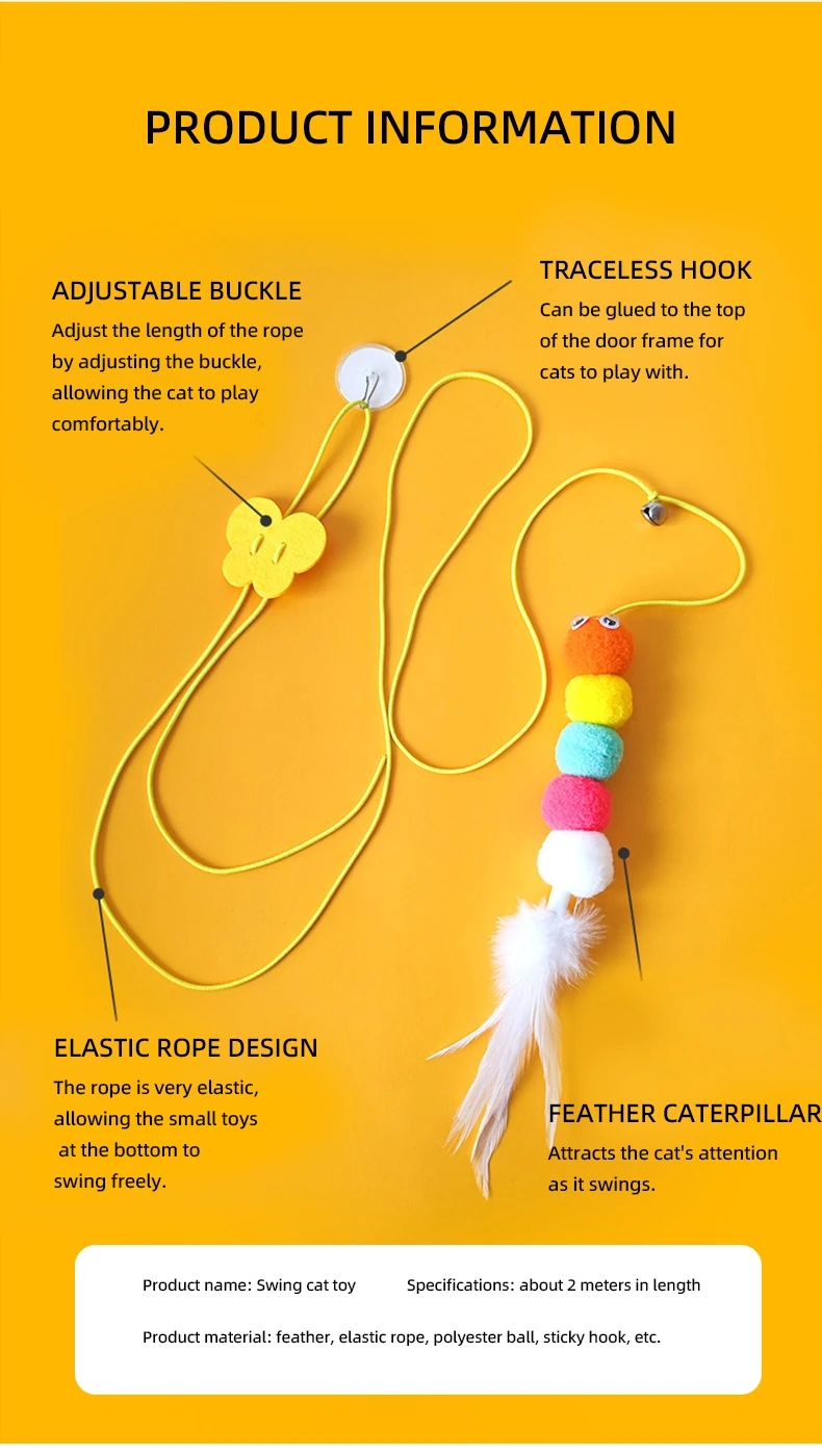Este divertido juguete para gatos está equipado con un gancho que se puede colgar en el marco de la puerta y la longitud total puede alcanzar los 1,8 metrosHay una alfombra antideslizante, no es fácil que se caiga.