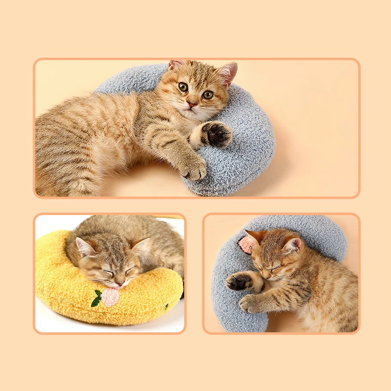 Nueva almohada para dormir para mascotas, almohada de medio mes para protección del cuello de gato, almohada para dormir profundo en forma de U