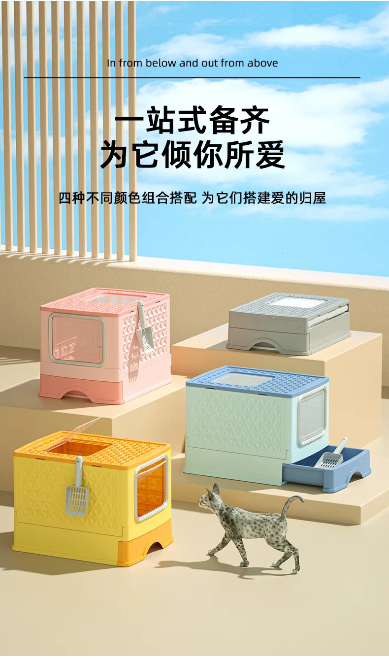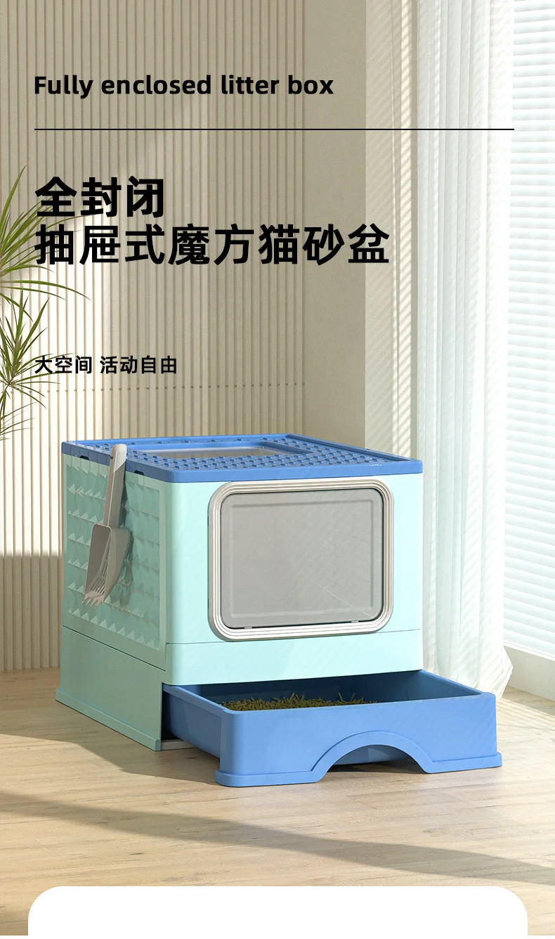 Nueva caja de arena para gatos completamente cerrada, tipo cajonera grande, inodoro plegable para mascotas, desodorización ultravioleta, caja de arena para gatos