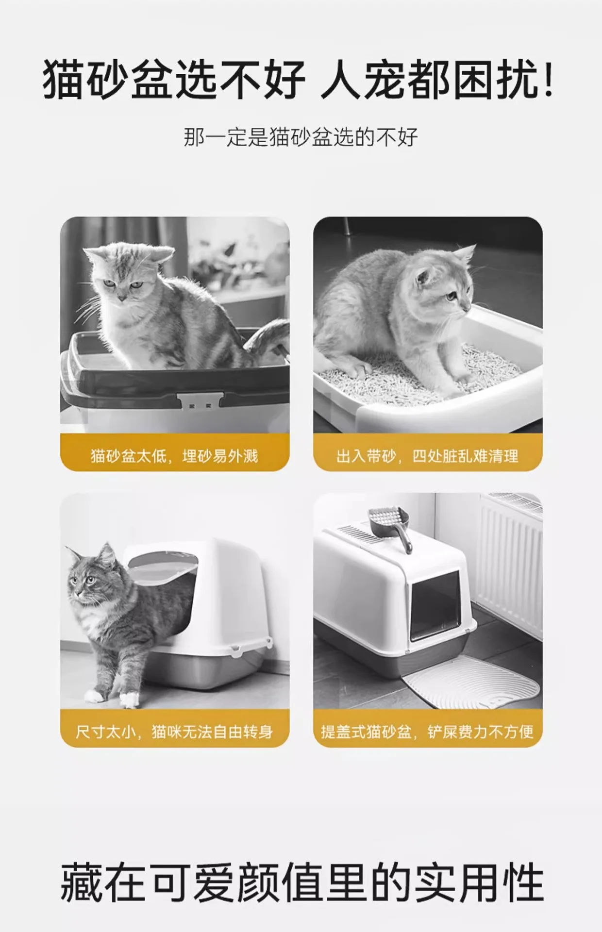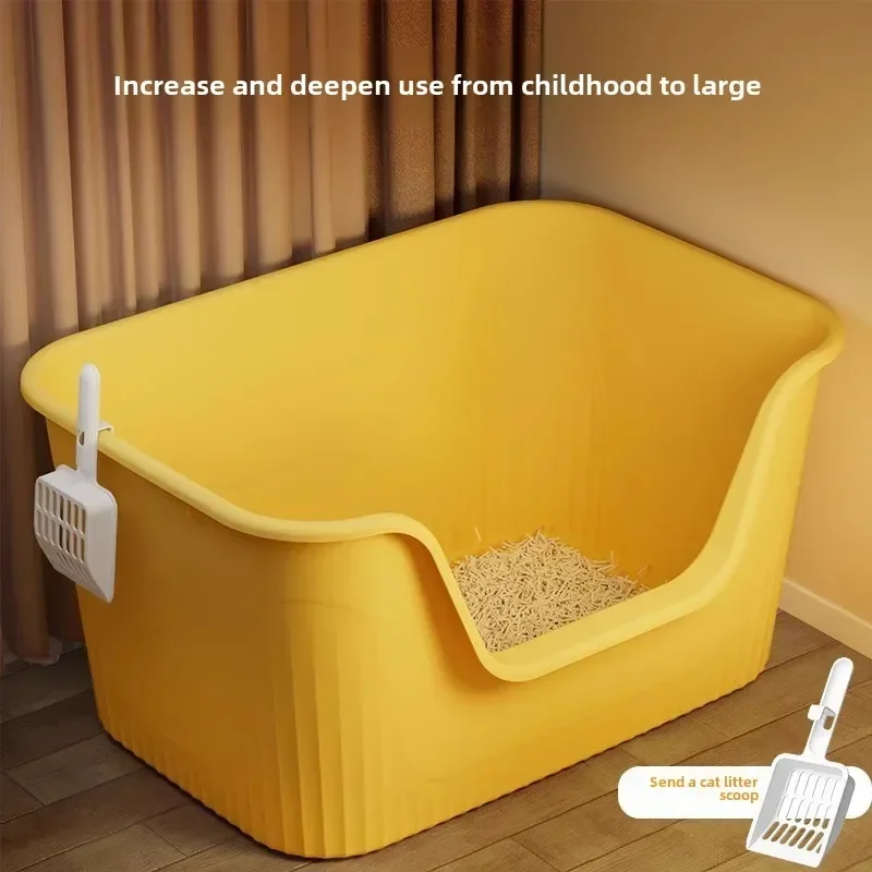 Nueva caja de arena para gatos, inodoro gigante para mascotas, semicerrado, a prueba de salpicaduras, caja de arena para gatos extragrande abierta, suministros para mascotas