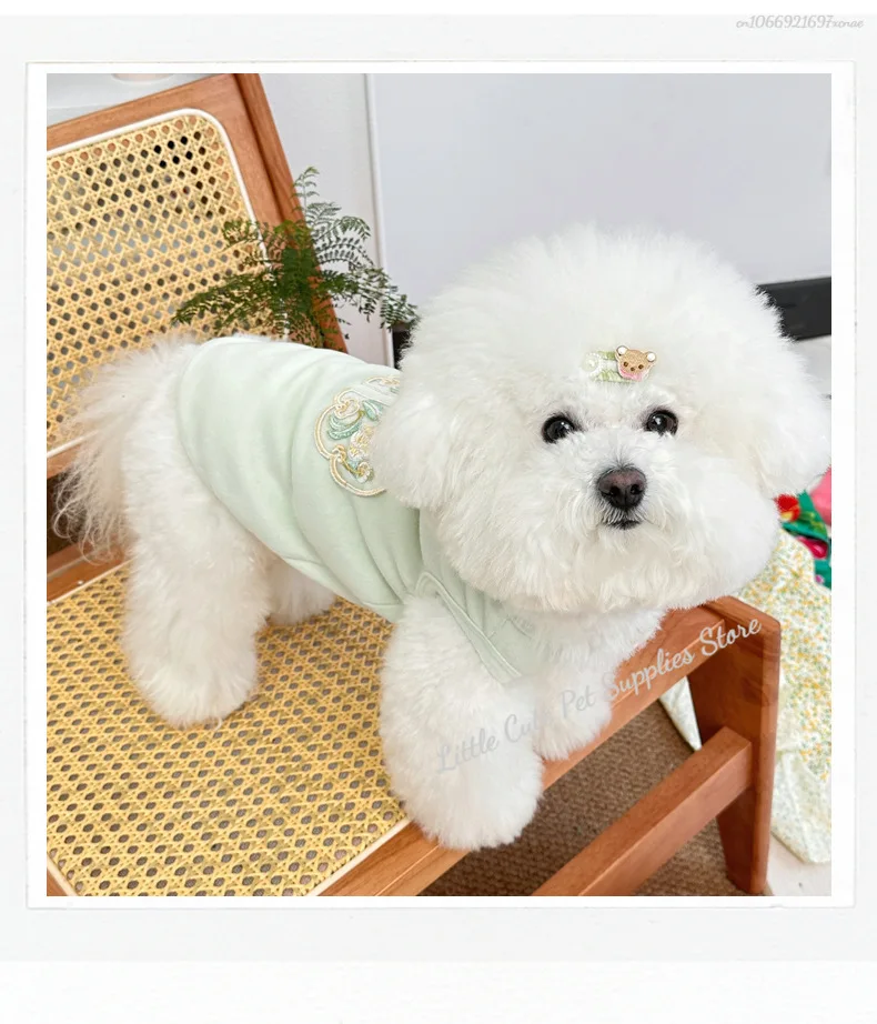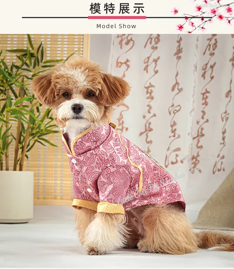 Nueva chaqueta cálida de invierno para perros, ropa bordada de estilos chinos para cachorros, chaquetas de disfraz de Año Nuevo, ropa para perros de Año Nuevo Chinoiserie