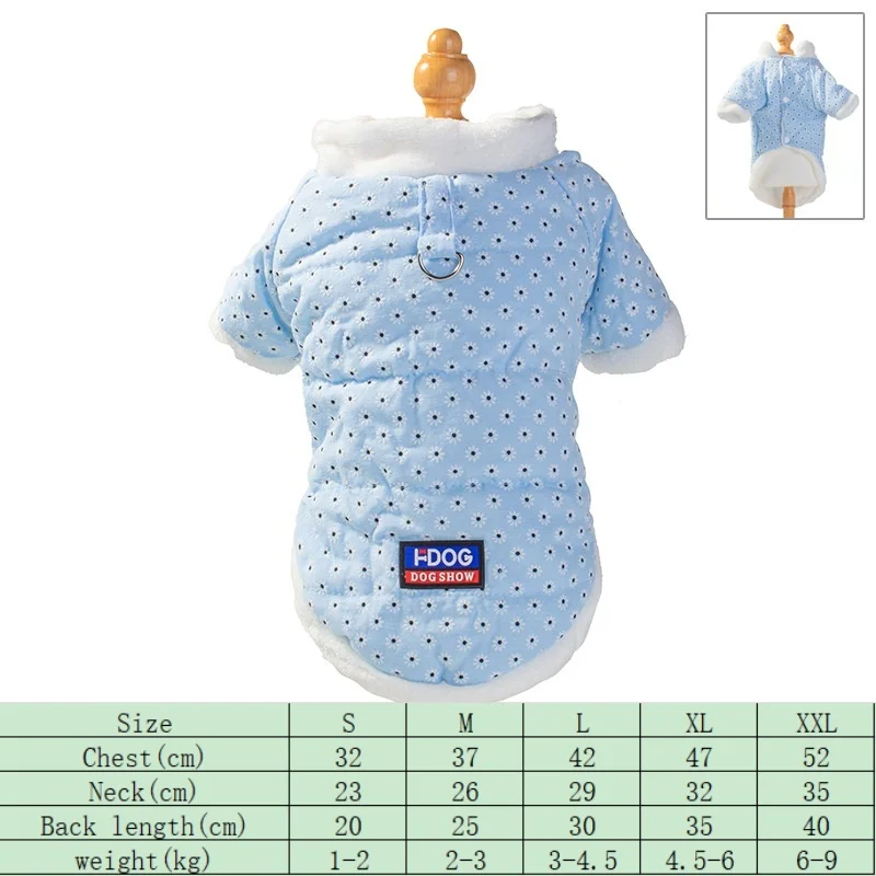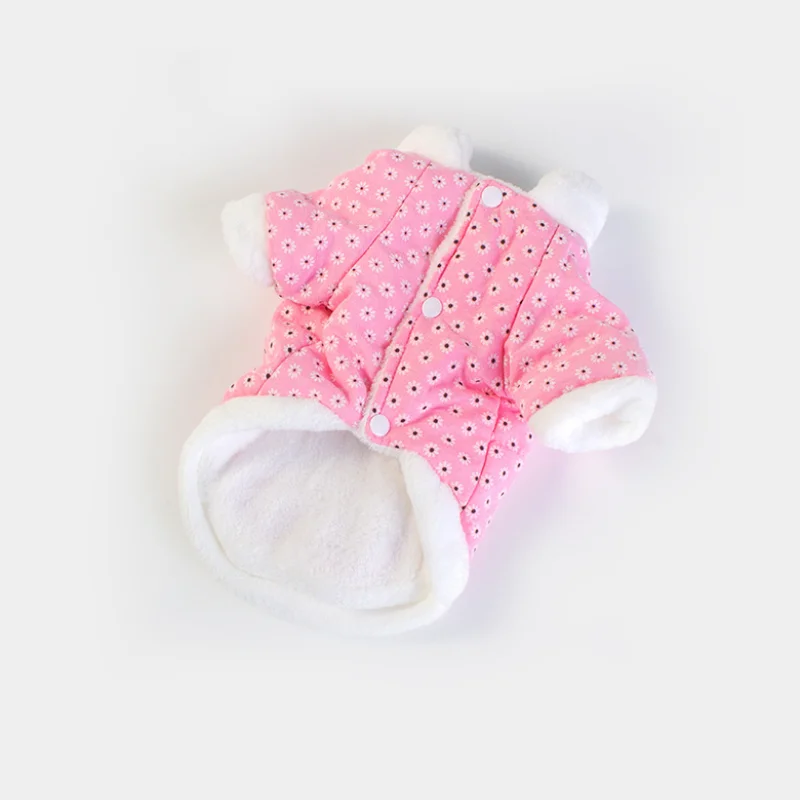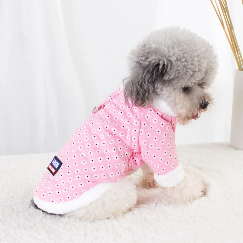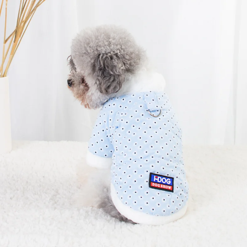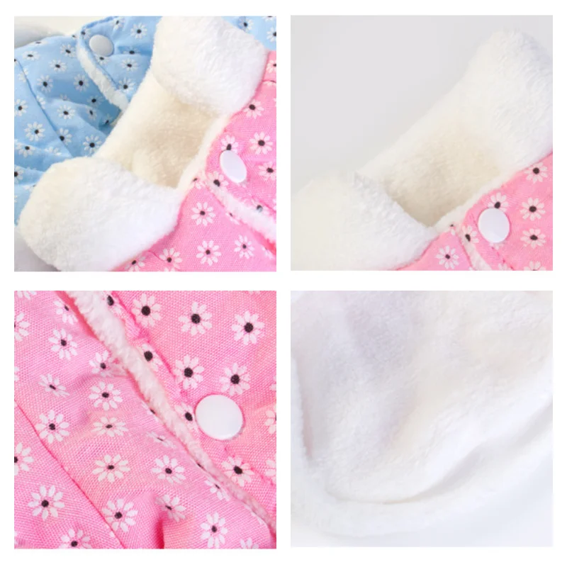 Nueva chaqueta para perro con estampado de margaritas, forro polar cálido, ropa gruesa de algodón azul y rosa a prueba de frío para perros