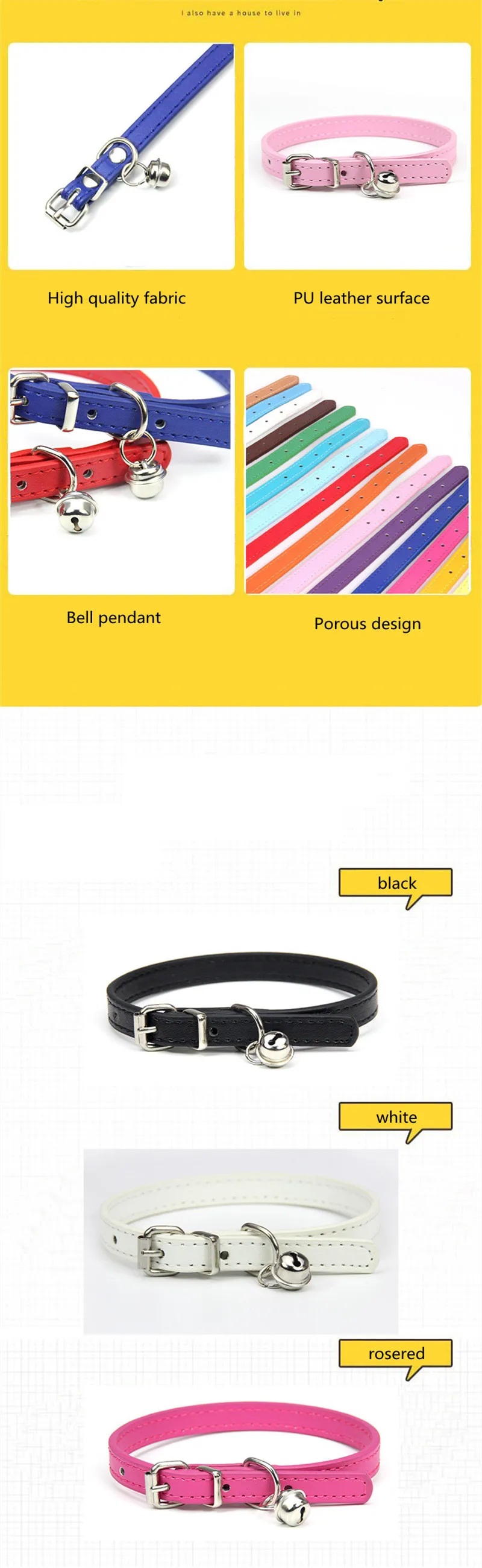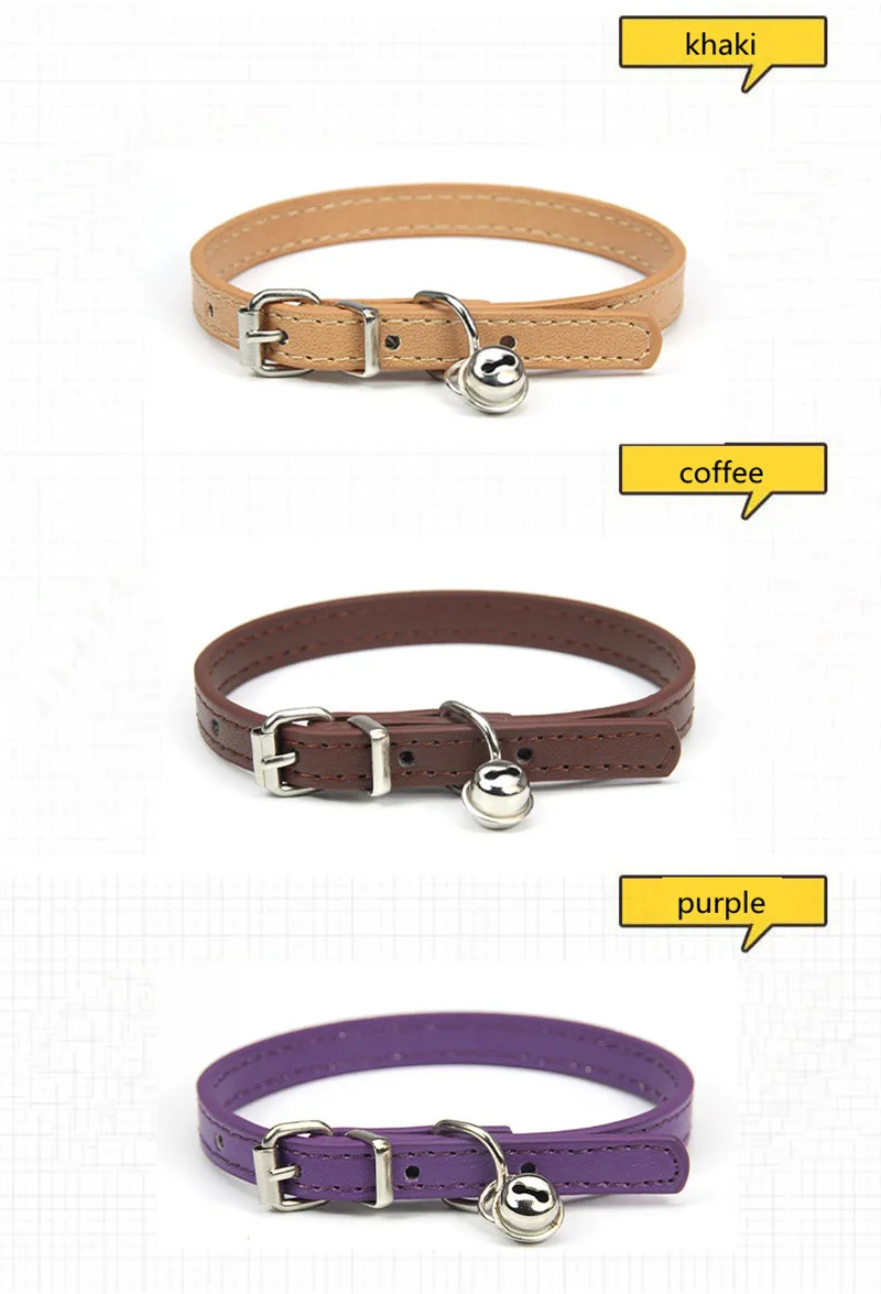 Nueva correa para el cuello para mascotas de Color caramelo, Collar duradero de cuero PU para gatos, collares para perros, hebilla de seguridad, anillo ajustable para el cuello para perros, suministro para mascotas