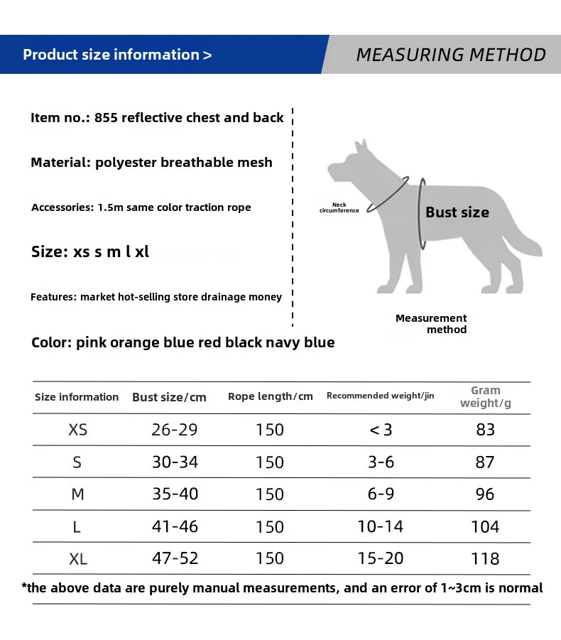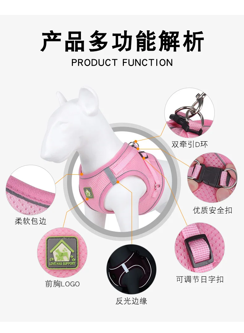 Nueva correa para el pecho para mascotas, correa reflectante y transpirable para perros, correa para el pecho para cachorros, suministros para mascotas