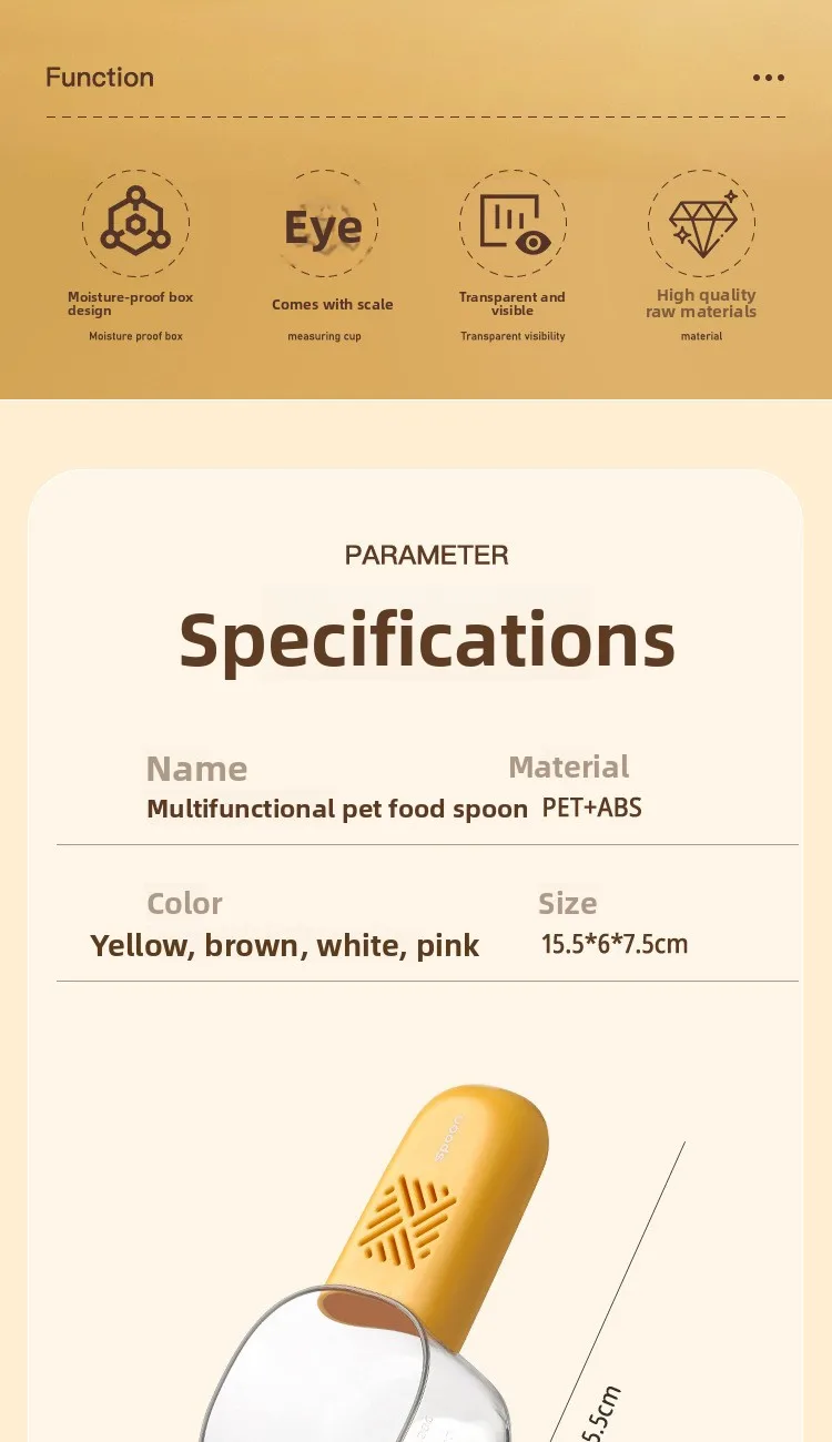 Nueva cuchara de comida para gatos, cuchara multifuncional para el hogar, báscula de comida para perros y gatos, cucharas medidoras creativas de granos, productos para mascotas