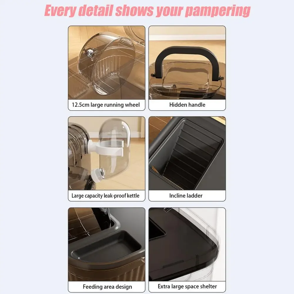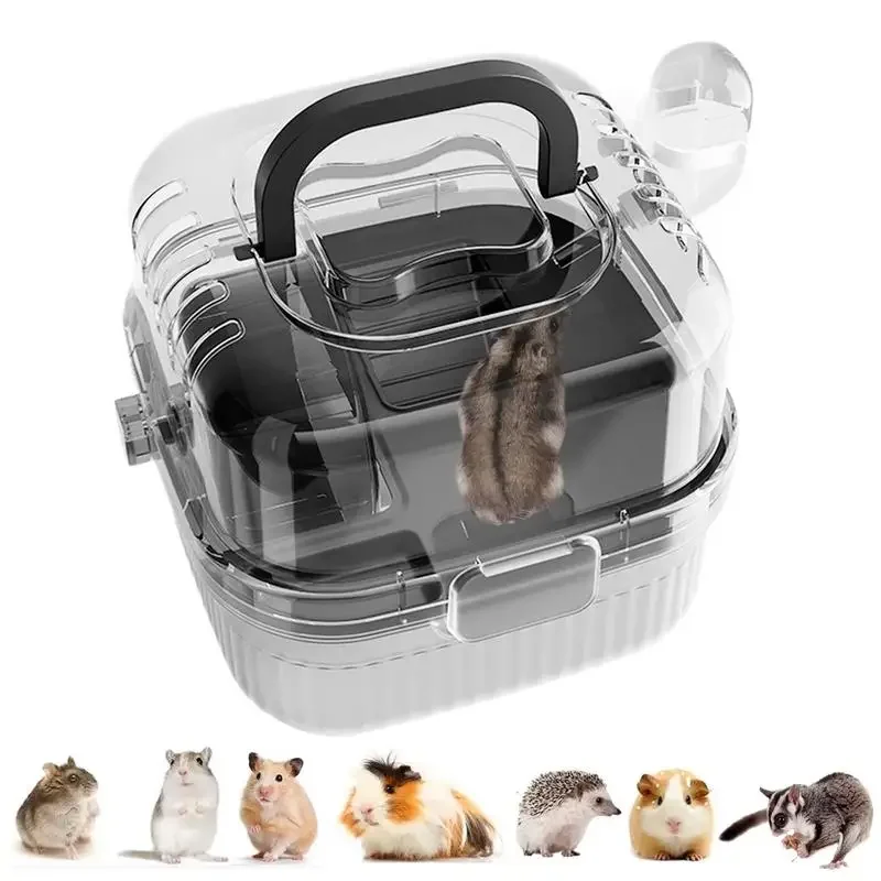 Nueva jaula para hámster, cesta exterior translúcida portátil, adornos de ramas de flores, bolsa exterior panorámica de oso de alambre dorado, suministros para mascotas