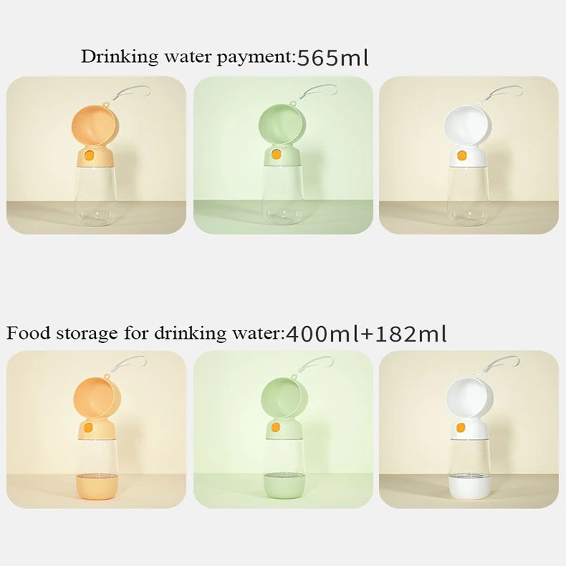 Nueva llegada 2 en 1 portátil material de calidad alimentaria perro gato viaje mascota botella de agua con dispensador de alimentos