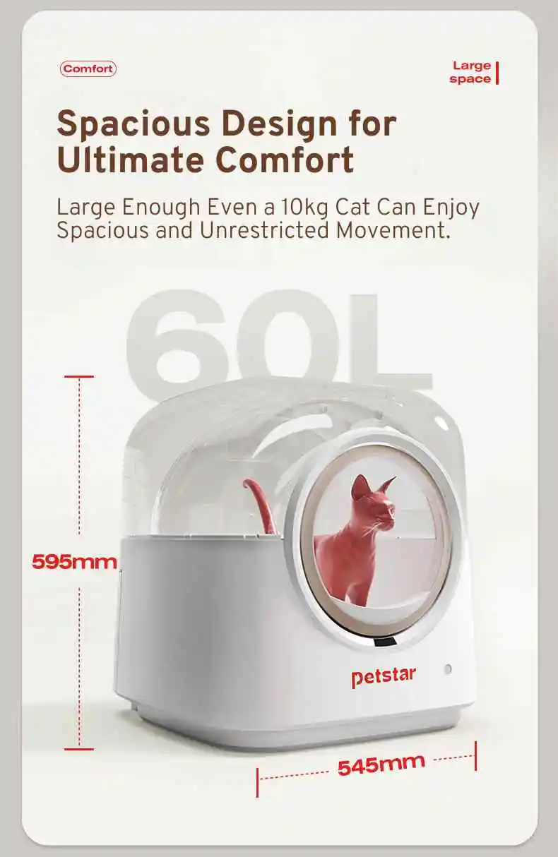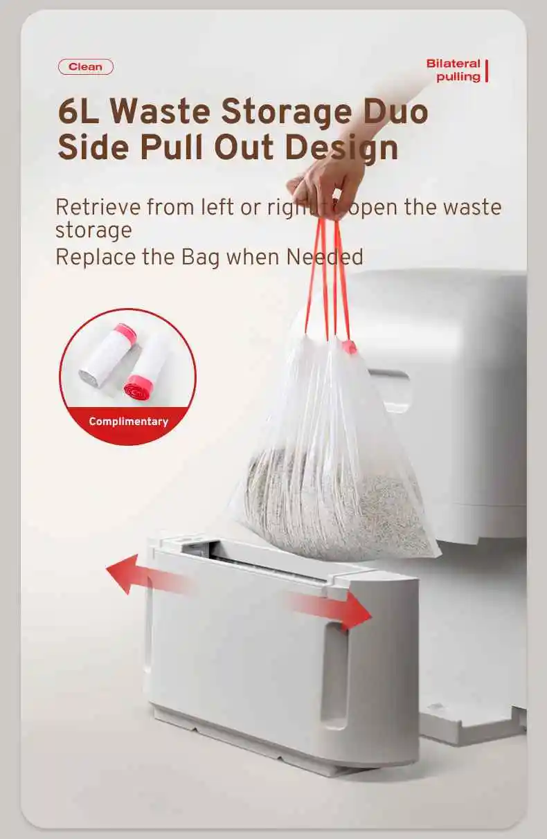 * Sistema de autolimpieza automática: la caja de arena se limpia automáticamente después de cada uso, lo que garantiza una experiencia sin complicaciones para usted y su gato.