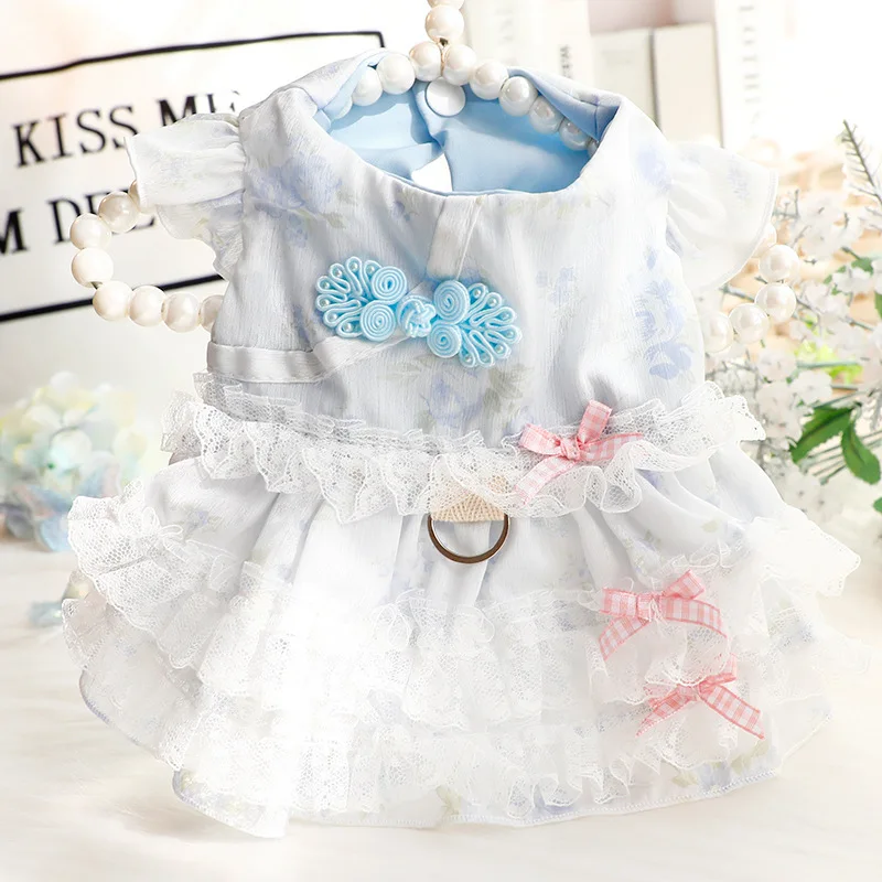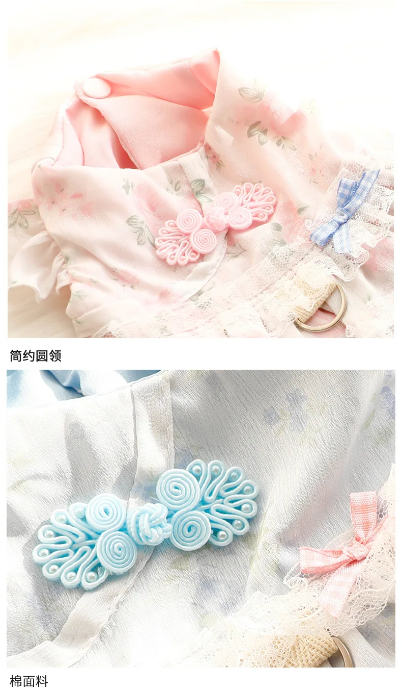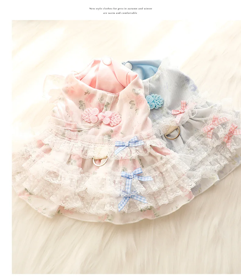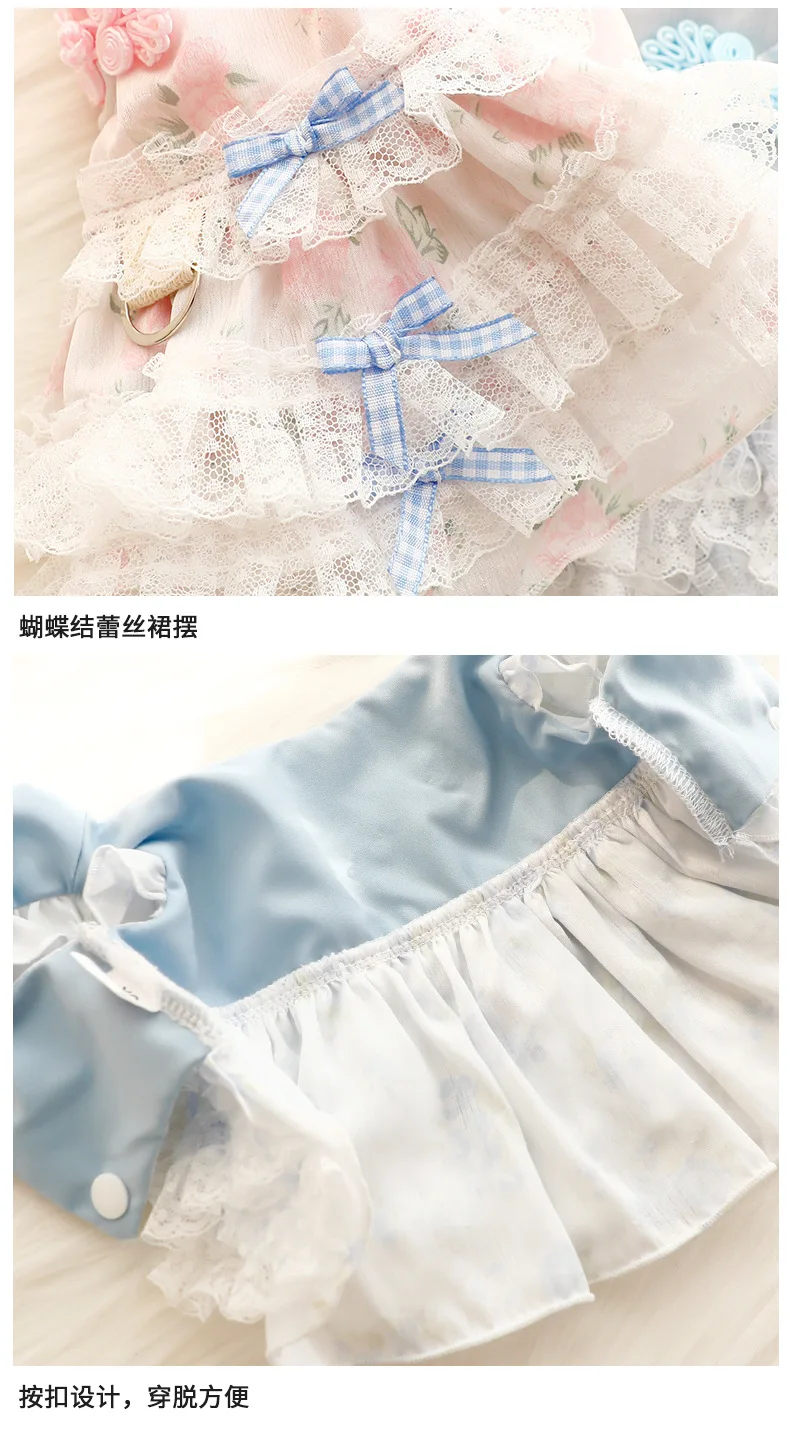 Nueva llegada de primavera/verano, falda de princesa estilo perro gato, diseño de encaje con estampado Floral y anillo en D para Do'g pequeño