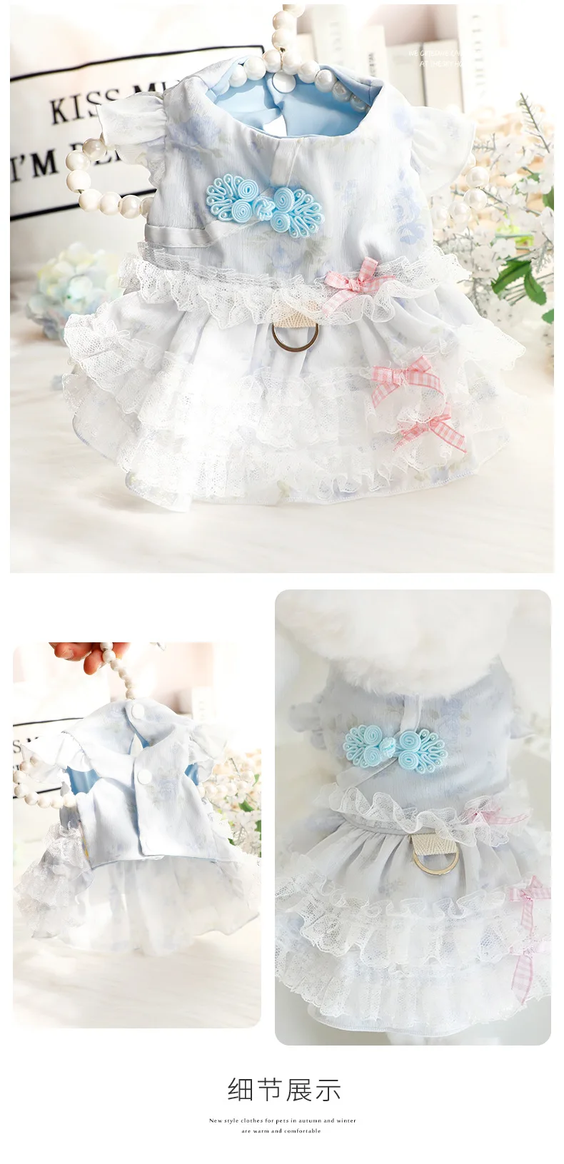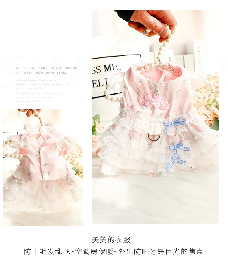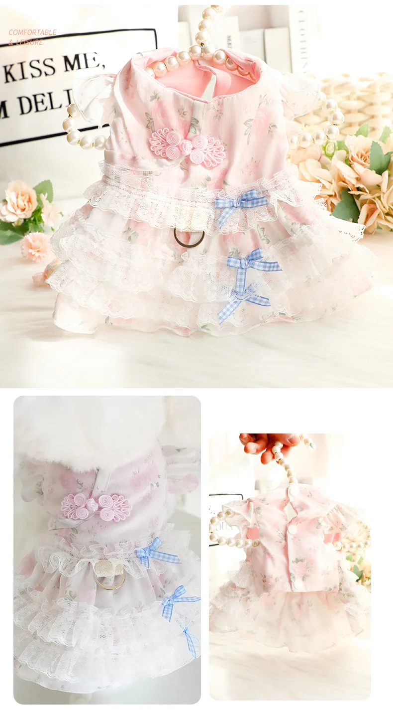 Nueva llegada de primavera/verano, falda de princesa estilo perro gato, diseño de encaje con estampado Floral y anillo en D para Do'g pequeño