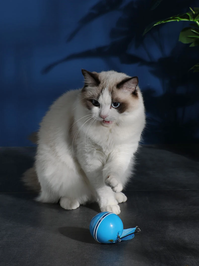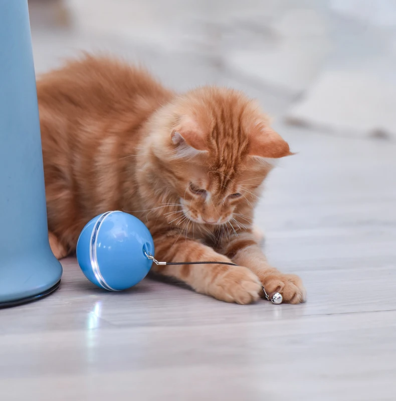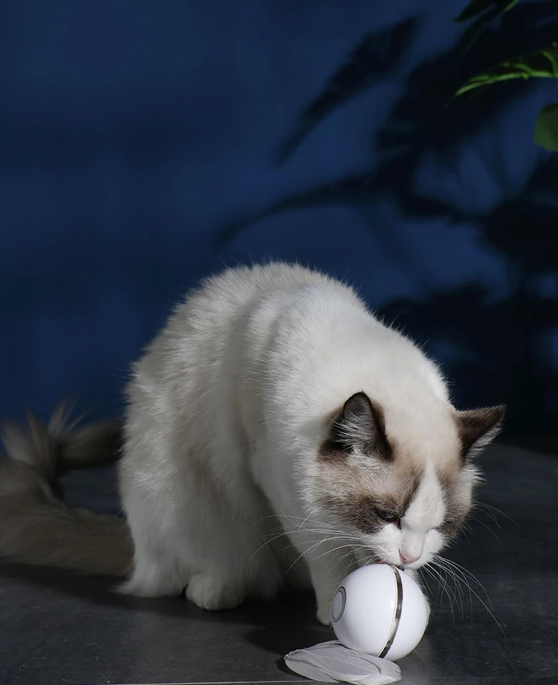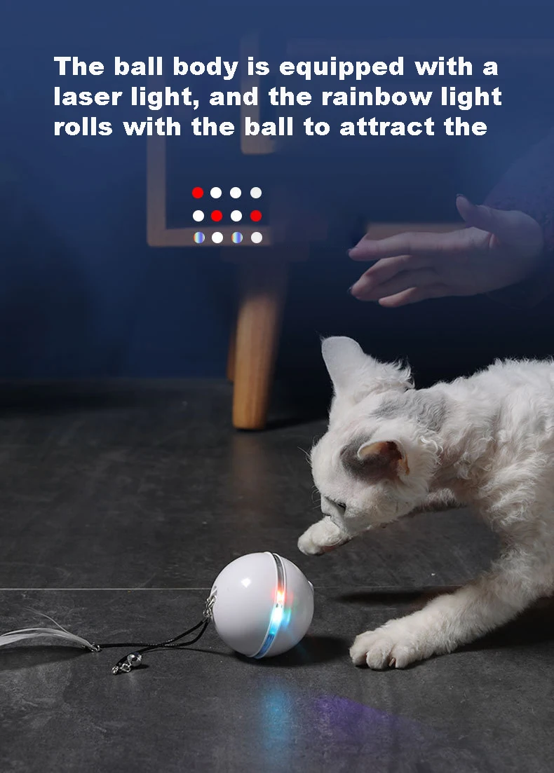 El cuerpo de la pelota está equipado con una luz láser y la luz del arco iris rueda con la pelota para atraer la atención del gato.