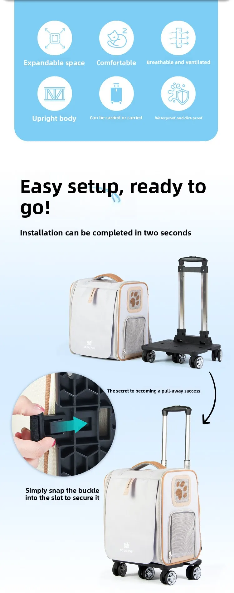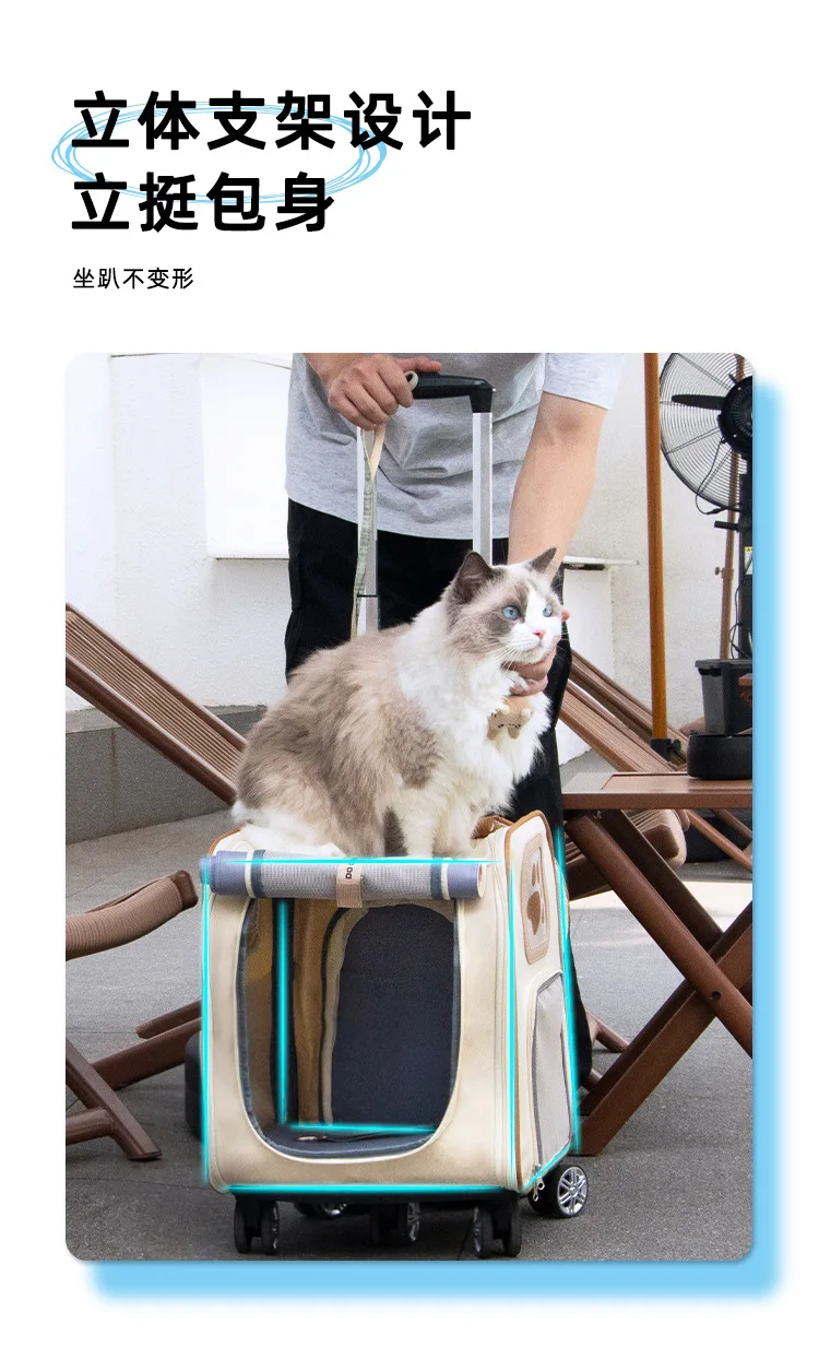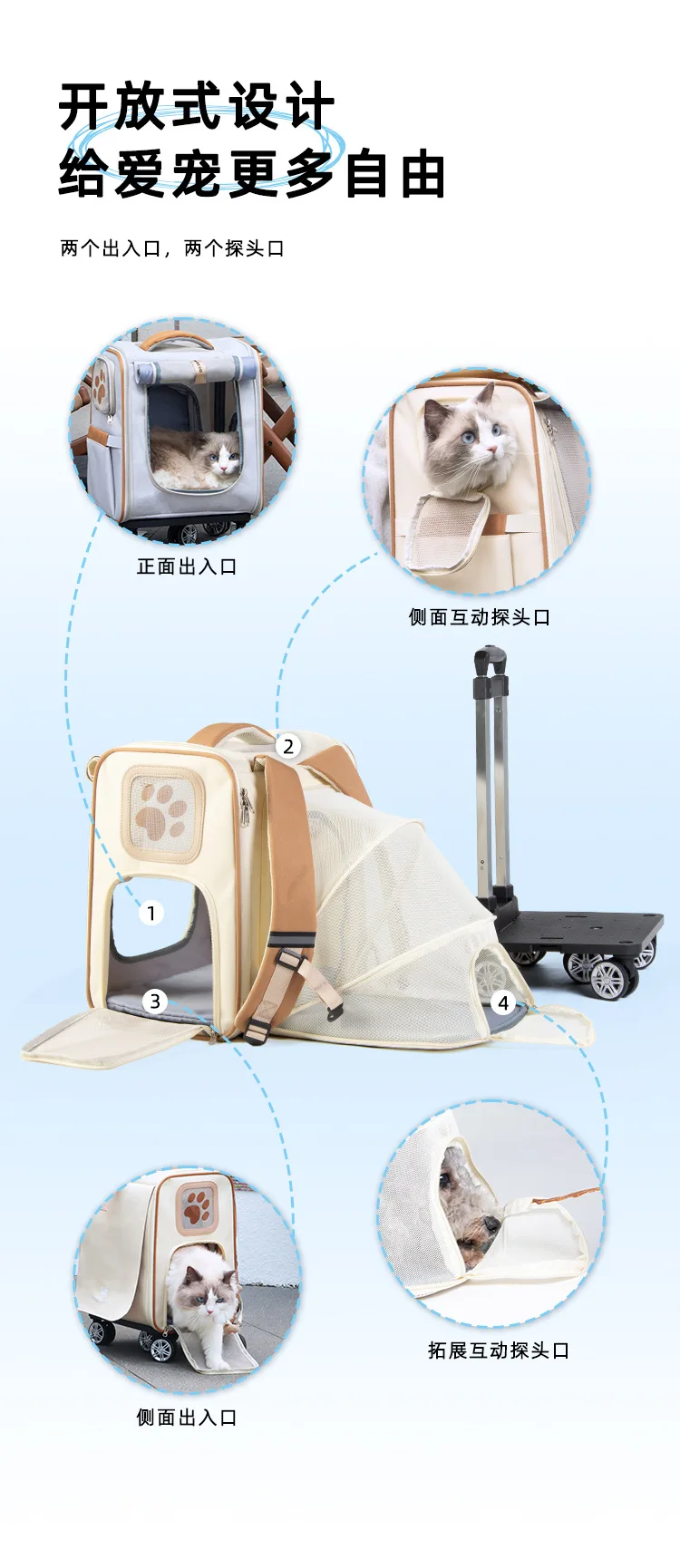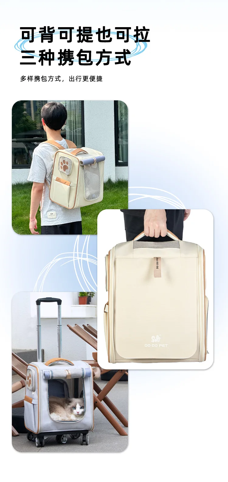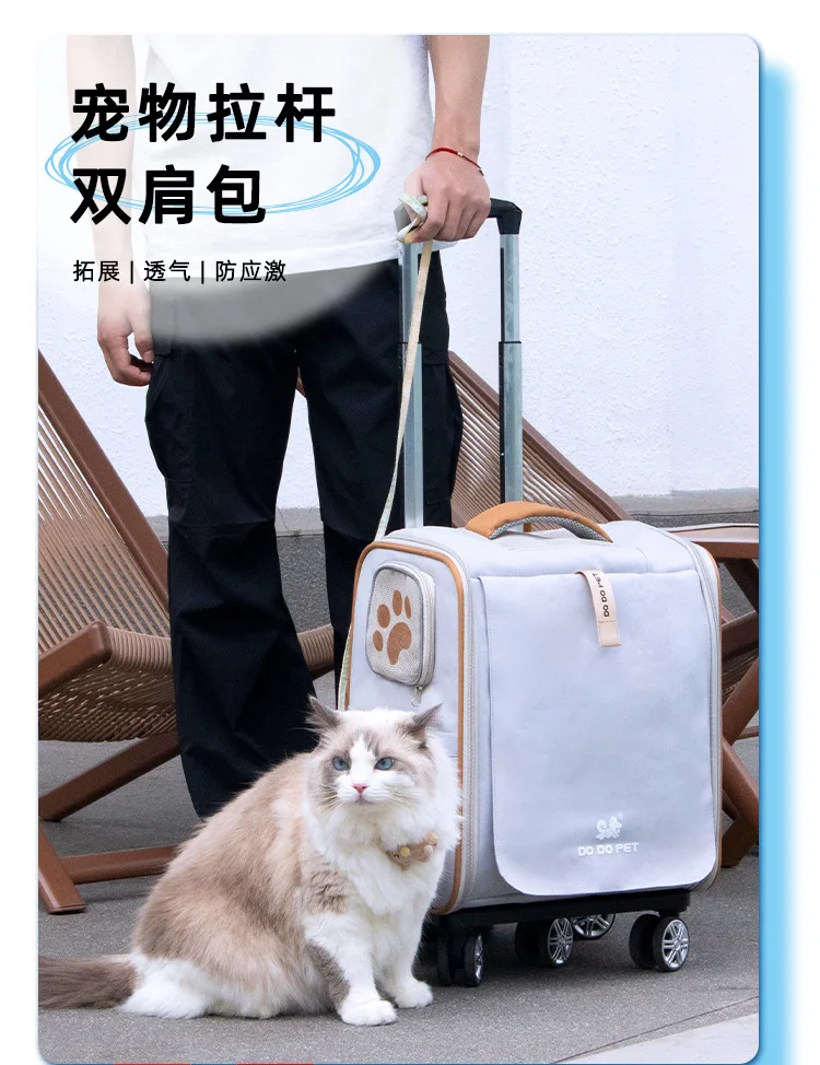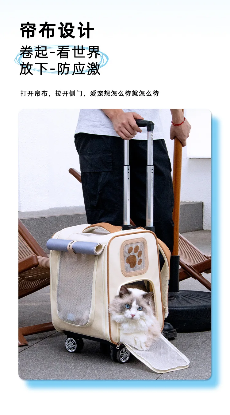 Nueva maleta con ruedas para mascotas, maleta plegable portátil para perros y gatos, cubierta con ruedas a cuadros, productos para mascotas
