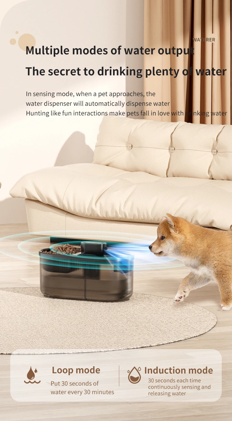 Modo de detección: cuando la luz indicadora está en modo de salida de agua con detección, el animal comienza a emitir agua dentro de un área en forma de abanico de 120 grados cerca del frente durante 30 a 35 segundos.