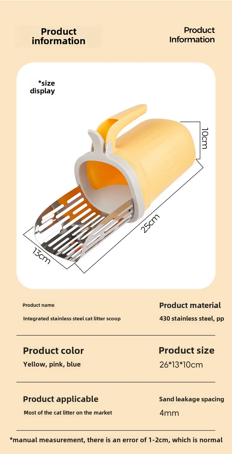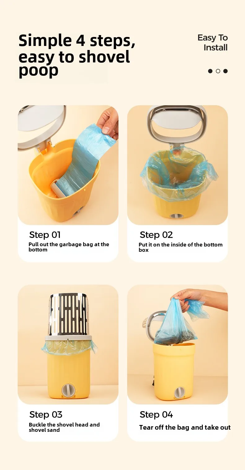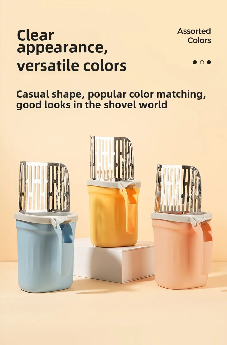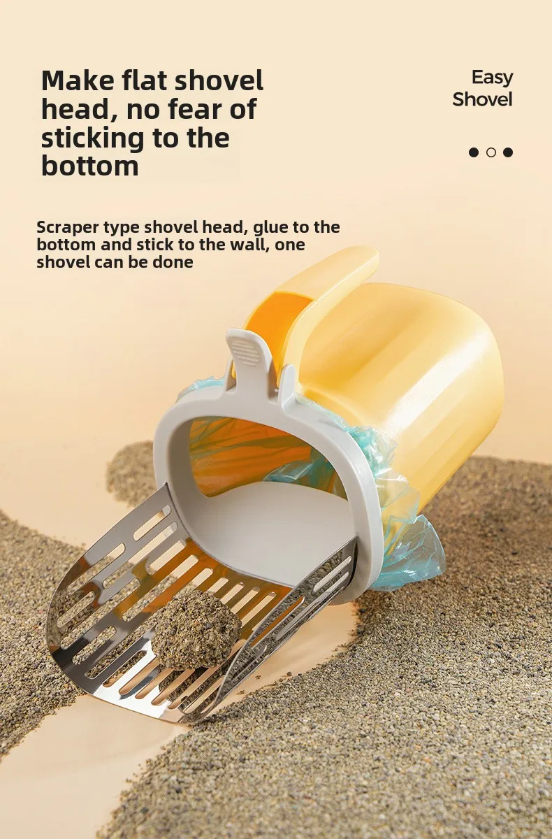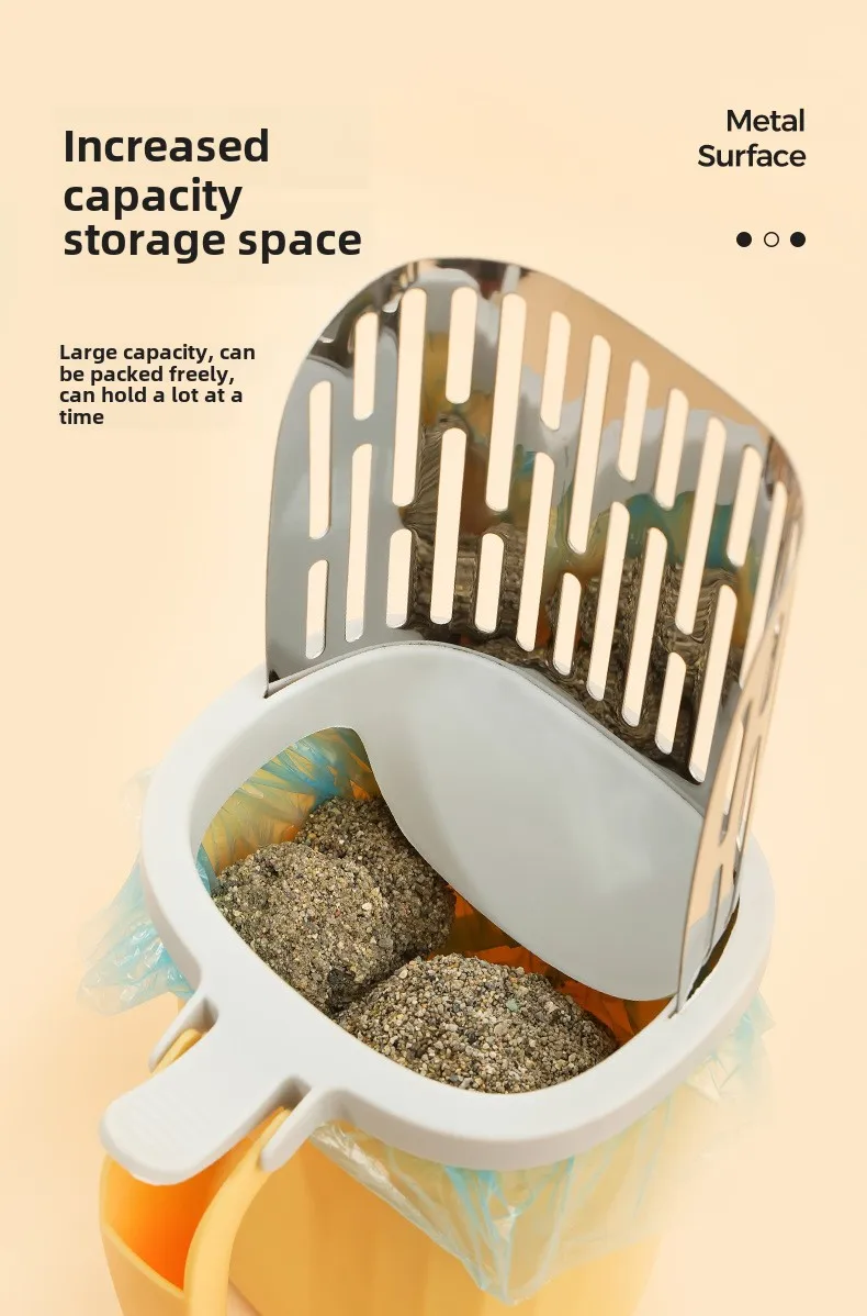 1. Esta pala para arena para gatos viene con un bote de basura, que es conveniente y ahorra tiempo para la limpieza.