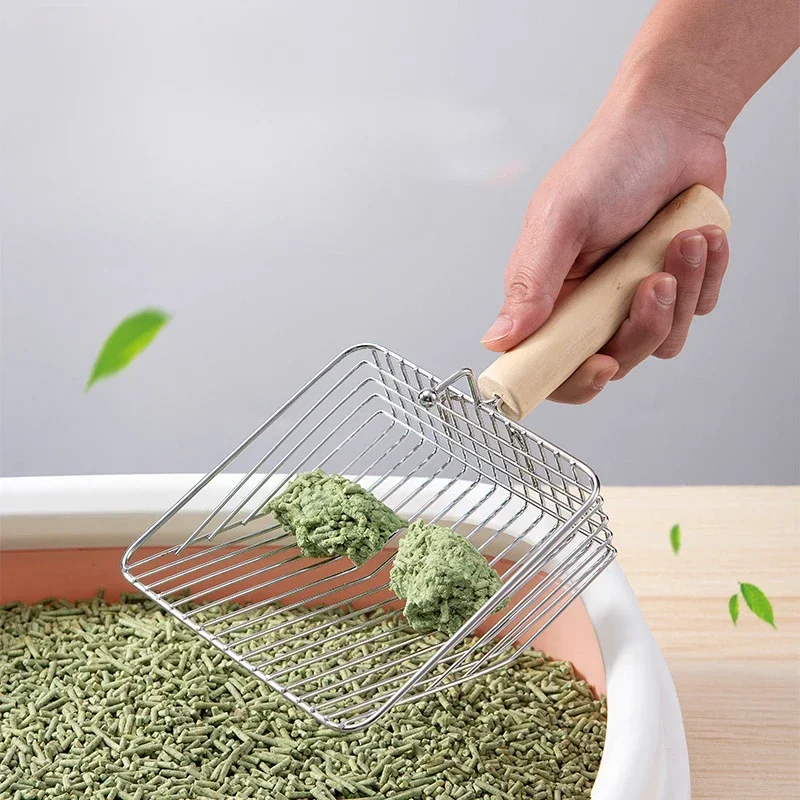 【Alta calidad】: la pala para arena está hecha de acero inoxidable, duradera y estable, la pala para arena para gatos se limpiará fácilmente enganchándola en la caja de arena y recogiéndola.